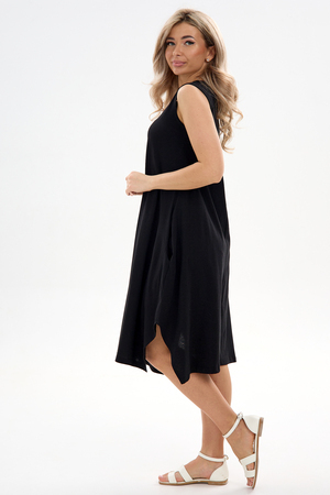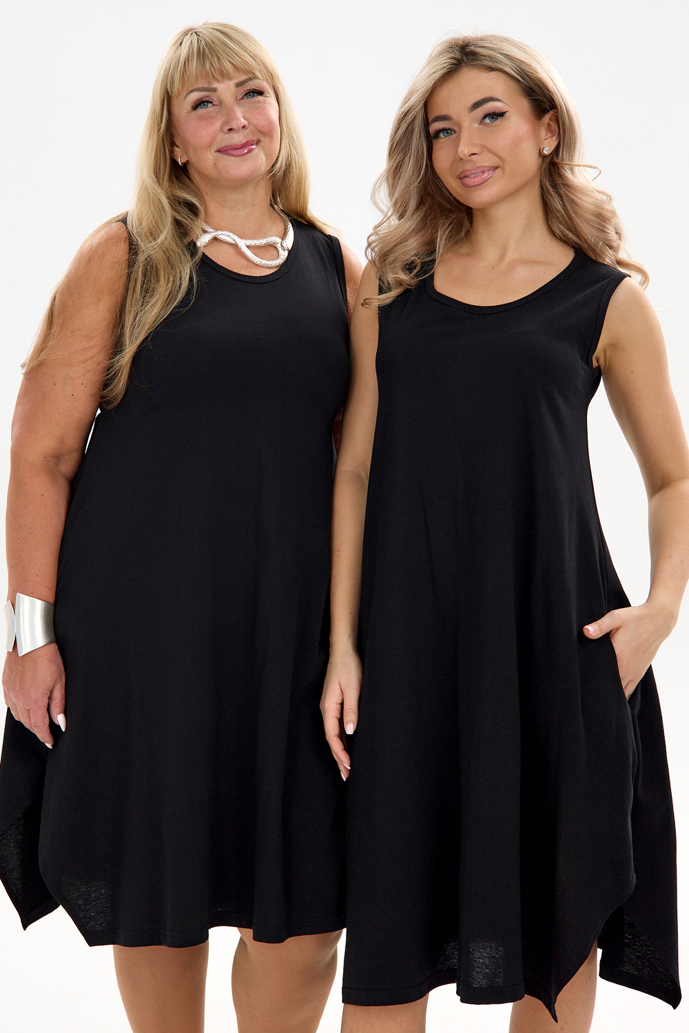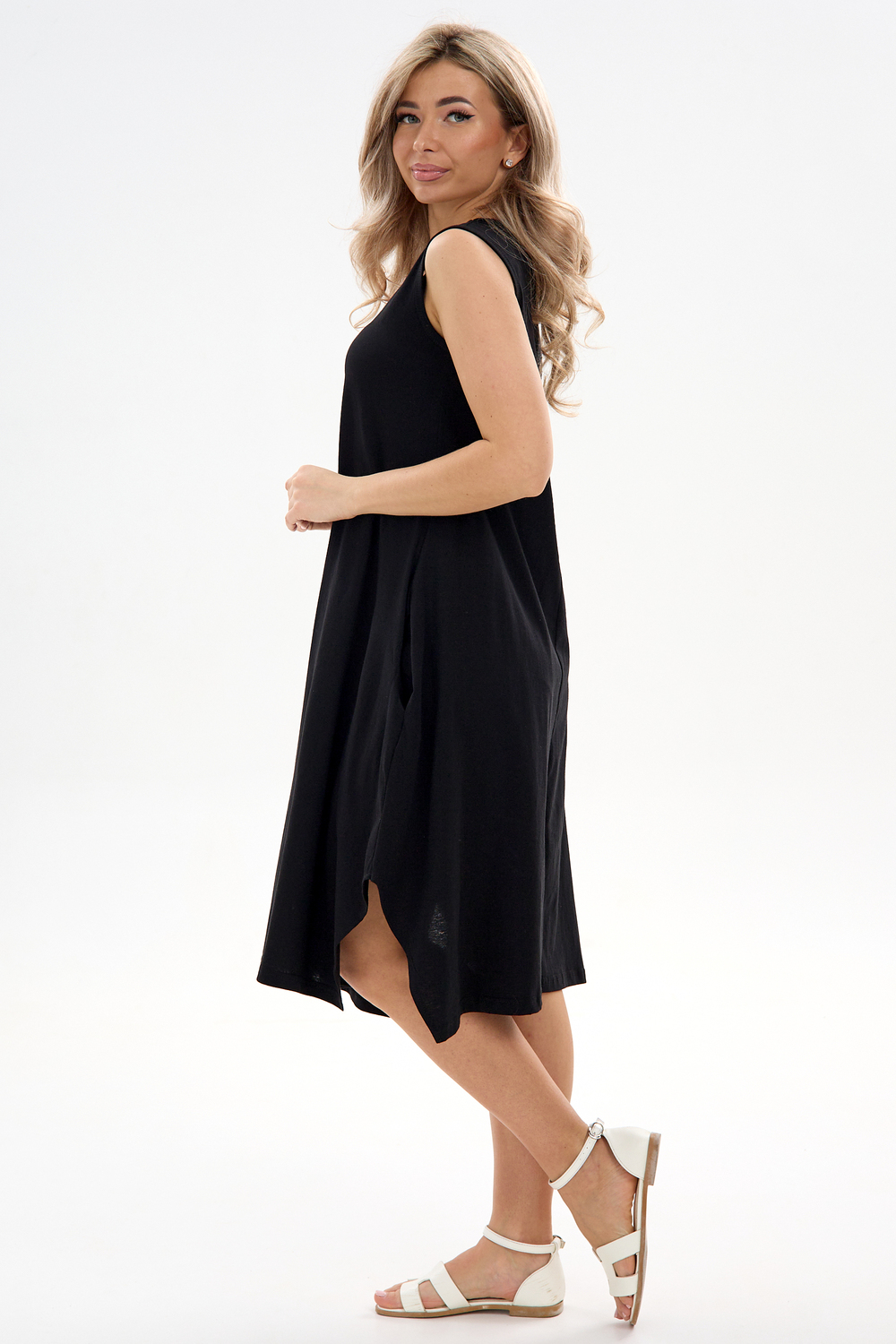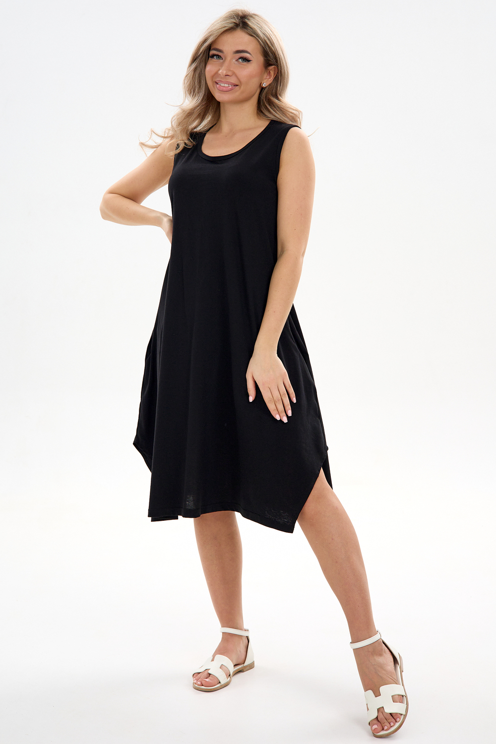 выполнен из трикотажного полотна -100% хлопка , комфортный и мягкий на ощупь, размерная сетка включает в себя большие размеры. Подол сарафана украшен ассиметричными вырезами. Удобный удлиненный хлопковый сарафан подойдет и как летний на прогулку или на пляж и как домашнее нарядное платье. Проверенный крой, свободный и не облегающий фигуру, не ограничивает движений, что немаловажно для беременных или полных женщин. А - силуэт с ассиметричной длиной миди, по колено интересно смотрится. Высокая посадка не акцентирует линию талии, расклешенный фасон сбалансирует фигуру с широкими плечами, скроет лишние сантиметры в бедрах. Женский сарафан - отличный подарок для девушек и женщин ! Мы отшиваем одежду на собственном производстве и гарантируем отличное качество и доступность цен. Сарафан летний нарядный домашний подчеркнет вашу индивидуальность и подарит комфорт и уверенность.