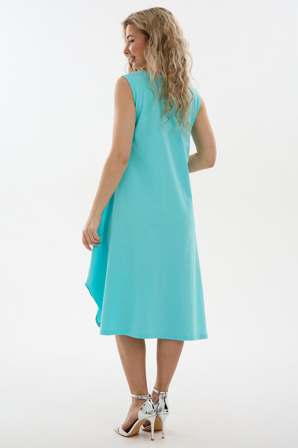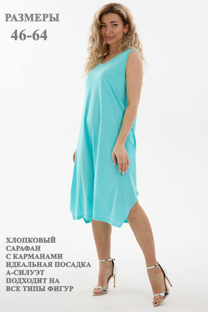 выполнен из трикотажного полотна -100% хлопка , комфортный и мягкий на ощупь, размерная сетка включает в себя большие размеры. Подол сарафана украшен ассиметричными вырезами. Удобный удлиненный хлопковый сарафан подойдет и как летний на прогулку или на пляж и как домашнее нарядное платье. Проверенный крой, свободный и не облегающий фигуру, не ограничивает движений, что немаловажно для беременных или полных женщин. А - силуэт с ассиметричной длиной миди, по колено интересно смотрится. Высокая посадка не акцентирует линию талии, расклешенный фасон сбалансирует фигуру с широкими плечами, скроет лишние сантиметры в бедрах. Женский сарафан - отличный подарок для девушек и женщин ! Мы отшиваем одежду на собственном производстве и гарантируем отличное качество и доступность цен. Сарафан летний нарядный домашний подчеркнет вашу индивидуальность и подарит комфорт и уверенность.