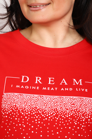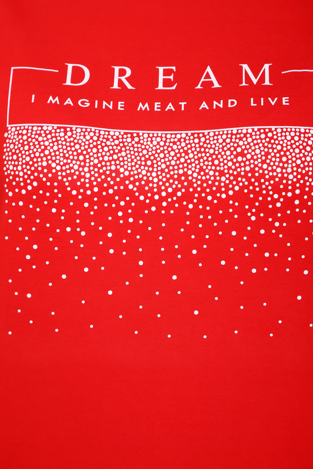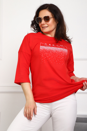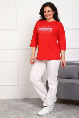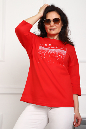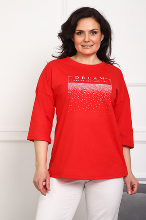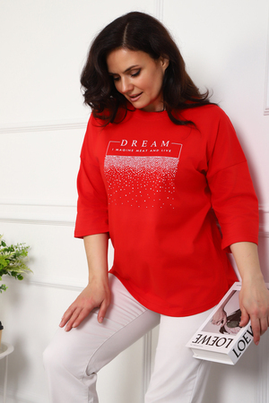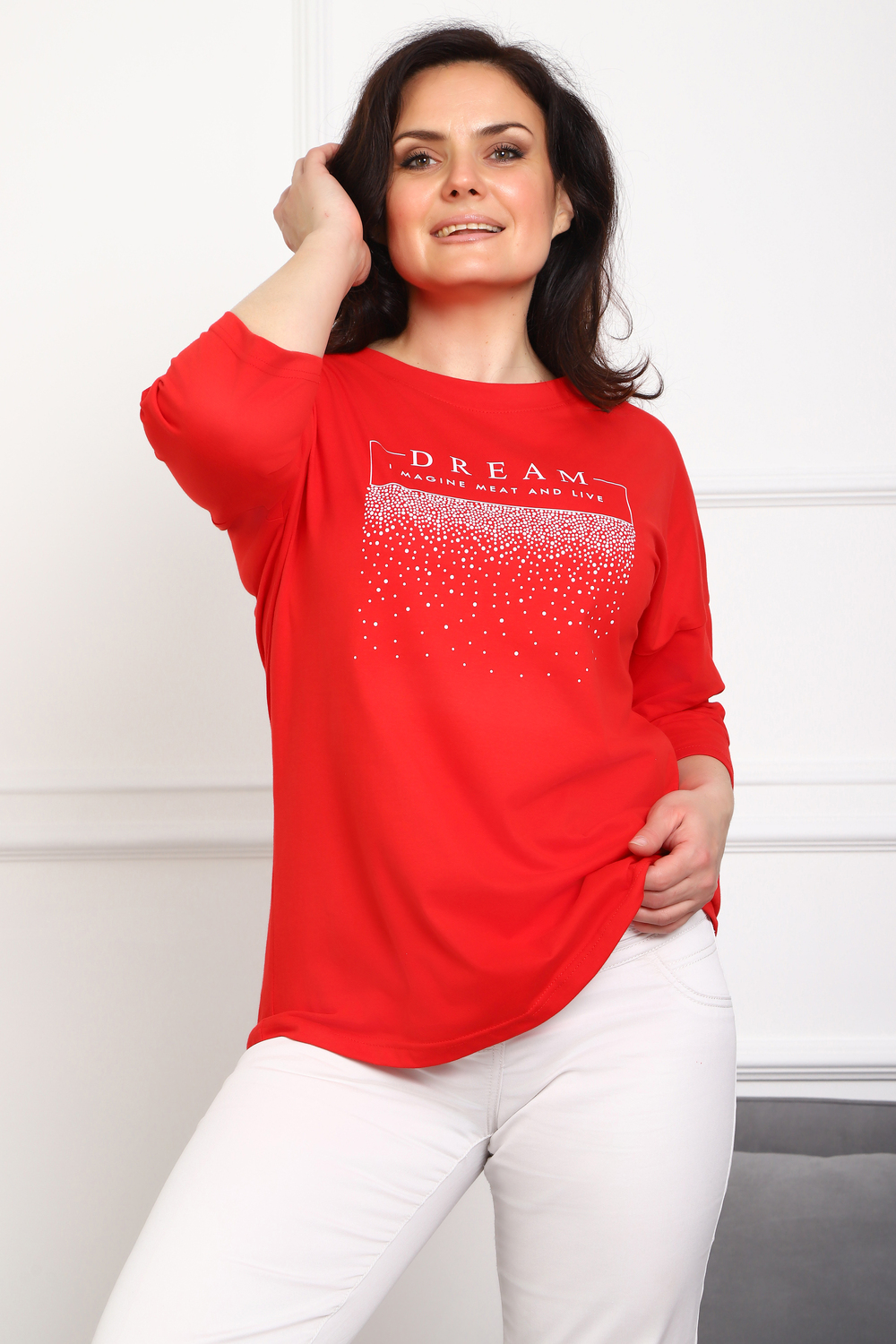 (туника женская дрим) Женская туника из мягкой и приятной к телу кулирки, выполненная из натурального хлопка (100%). Эта модель идеально подчеркнет вашу фигуру благодаря элегантному приталенному силуэту и слегка приспущенной линии плеча. Рукава длиной 3/4 делают образ комфортным и универсальным, а круглый вырез горловины добавляет легкости и нежности общему виду. Особенное внимание привлекает стильный принт на груди, украшенный изящной надписью, создающими романтичное настроение. Свободная посадка обеспечивает комфорт и свободу движений, делая этот предмет гардероба идеальным выбором для повседневных образов и отдыха.