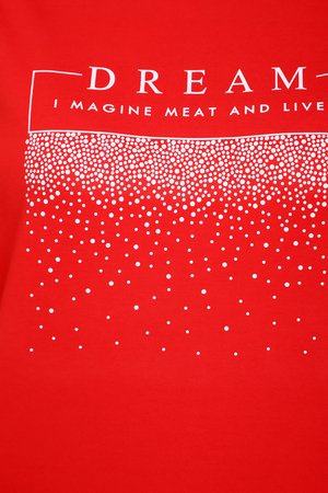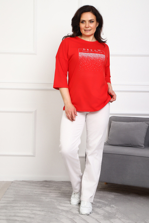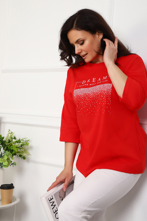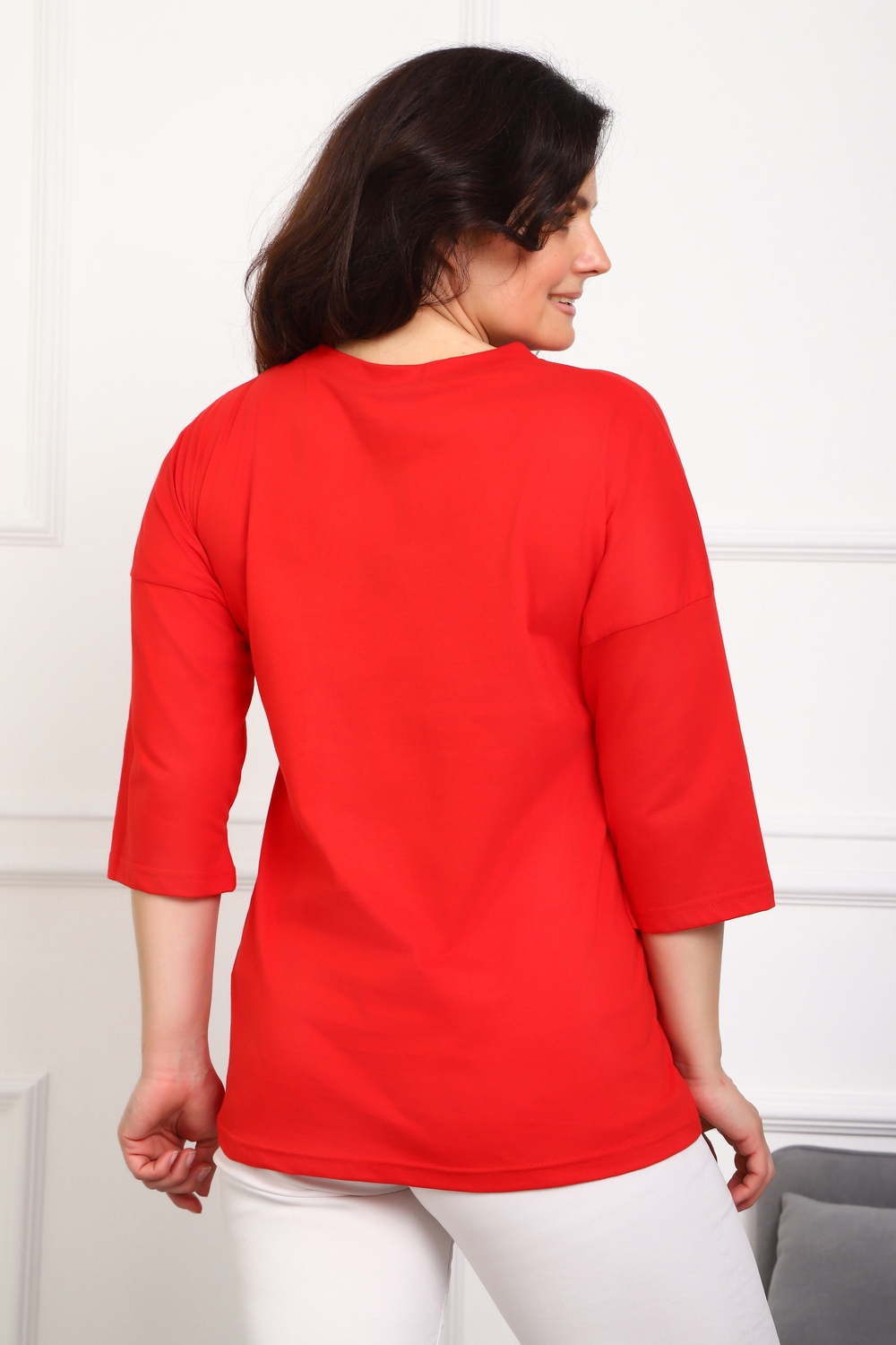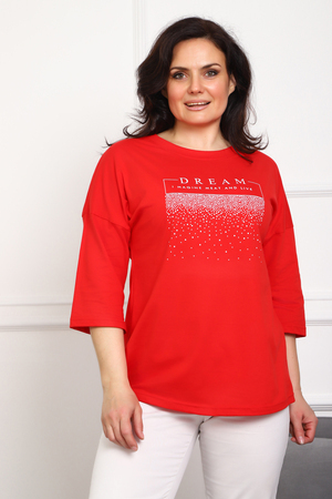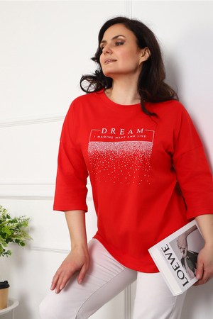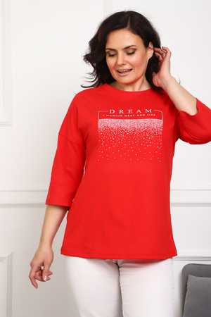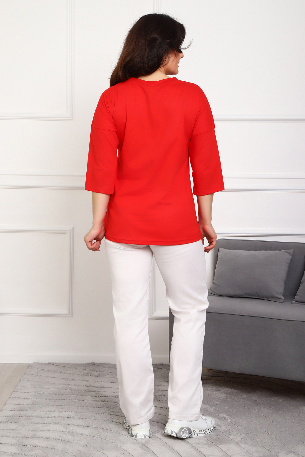 (туника женская дрим) Женская туника из мягкой и приятной к телу кулирки, выполненная из натурального хлопка (100%). Эта модель идеально подчеркнет вашу фигуру благодаря элегантному приталенному силуэту и слегка приспущенной линии плеча. Рукава длиной 3/4 делают образ комфортным и универсальным, а круглый вырез горловины добавляет легкости и нежности общему виду. Особенное внимание привлекает стильный принт на груди, украшенный изящной надписью, создающими романтичное настроение. Свободная посадка обеспечивает комфорт и свободу движений, делая этот предмет гардероба идеальным выбором для повседневных образов и отдыха.