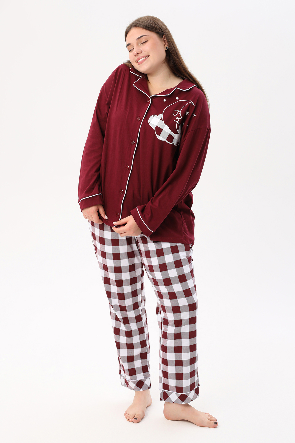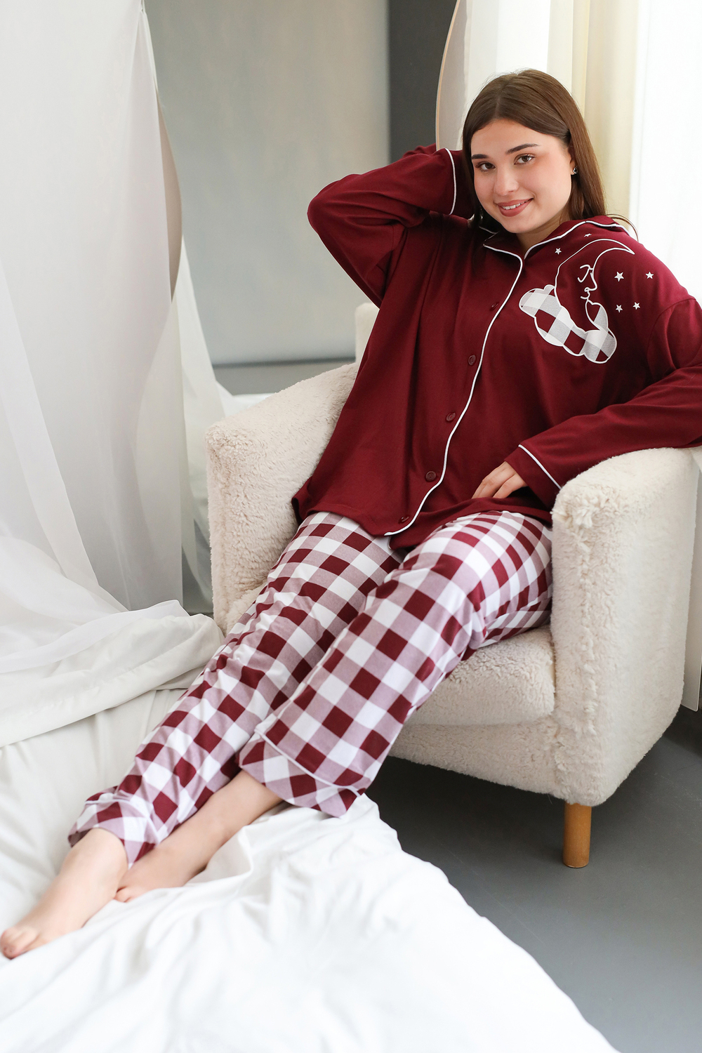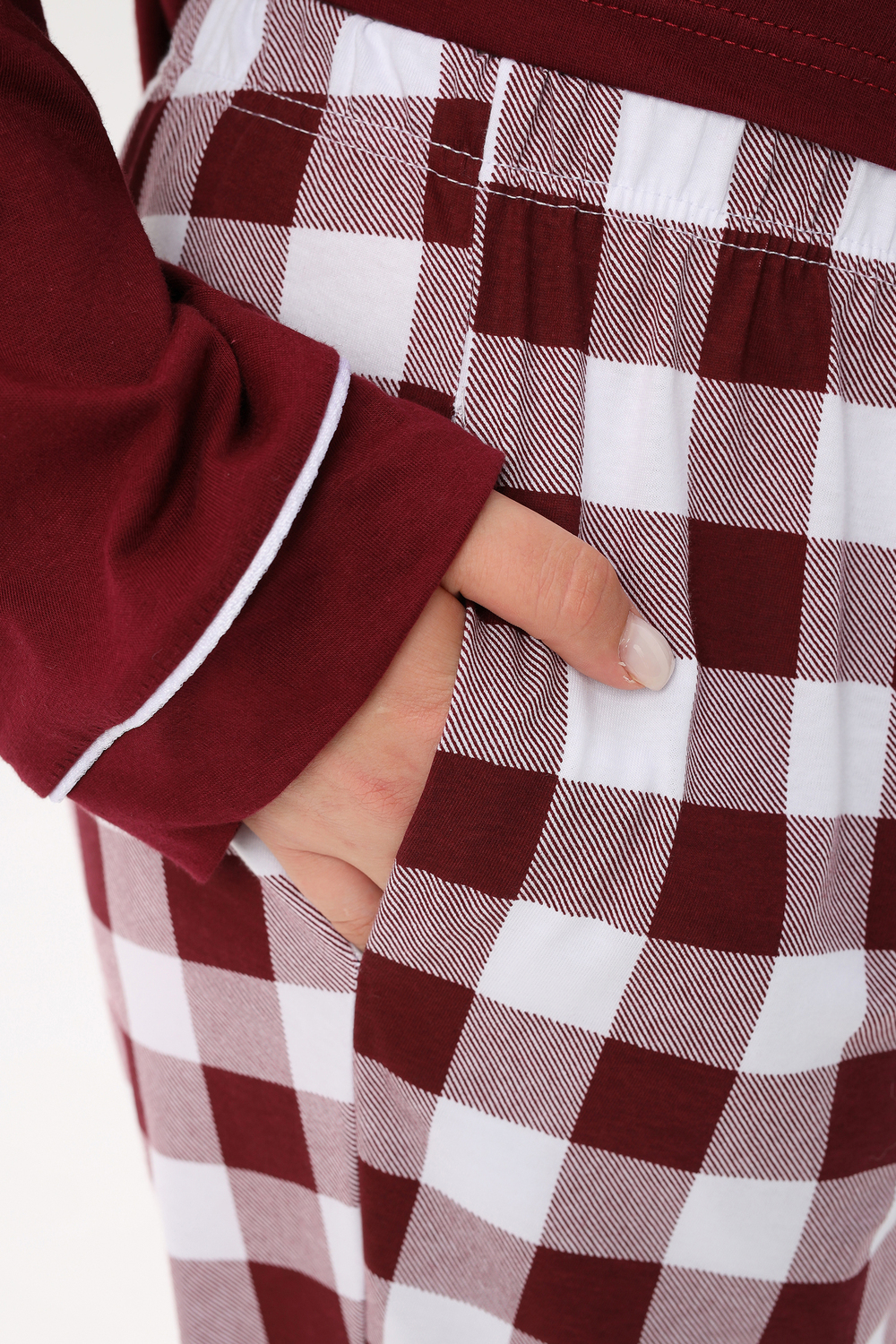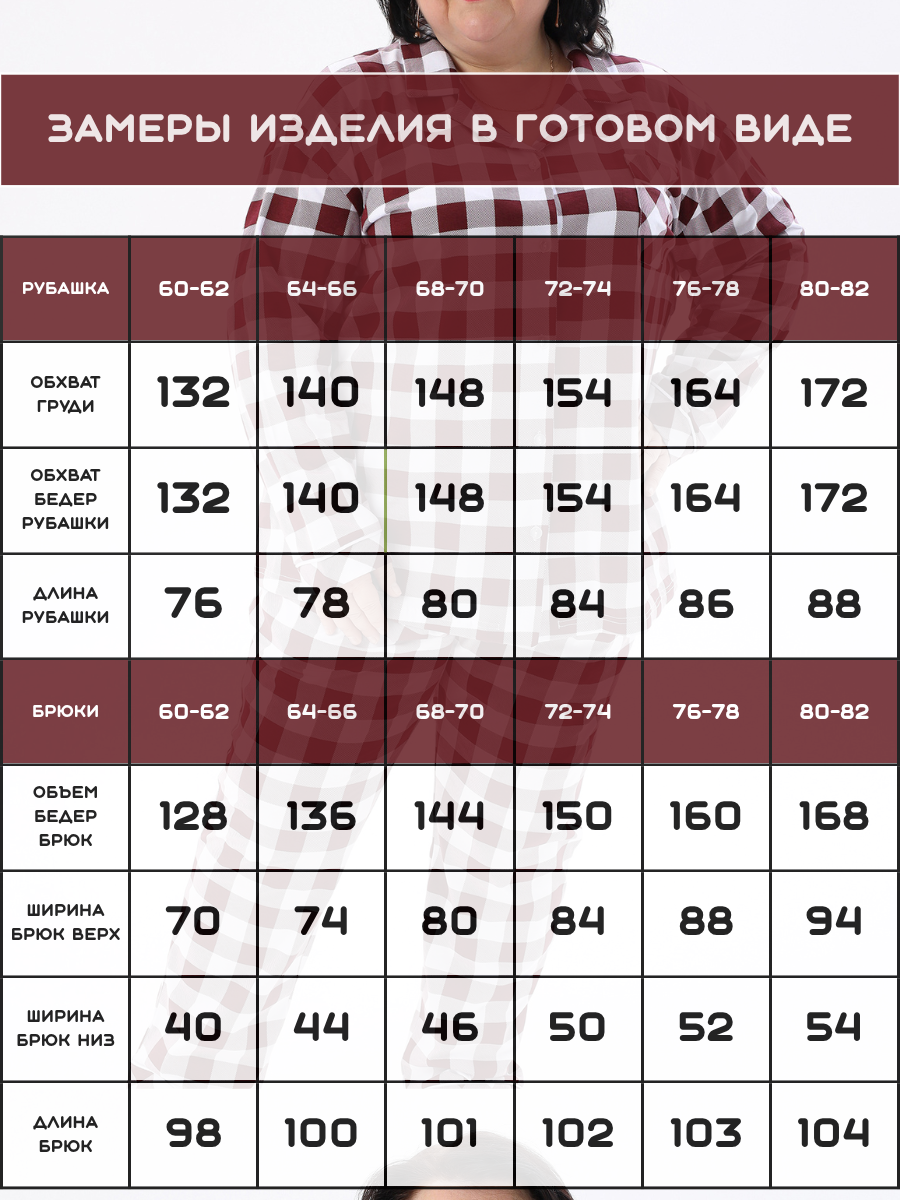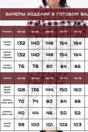 Набор пижамы "В Размере" из коллекции 2026 станет идеальным выбором для комфортного отдыха дома в прохладные осенние вечера. Этот утепленный комплект, выполненный из 100% хлопка, подарит вам ощущение нежности и тепла. Мягкая рубашка с длинным рукавом и прямые штанишки на резинке с удобными карманами в шве создают стильный и уютный образ. Рисунок в виде бордовой сетки придает пижаме особый шарм, а свободный крой обеспечивает максимальный комфорт для женщин plus size. Легкий трикотажный материал приятен к телу и не сковывает движений. Этот набор станет прекрасным подарком на Рождество или для тех, кто ценит комфорт и уют. Благодаря натуральным материалам и продуманному крою, пижама "В Размере" станет вашим любимым спутником в холодные осенние ночи.