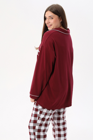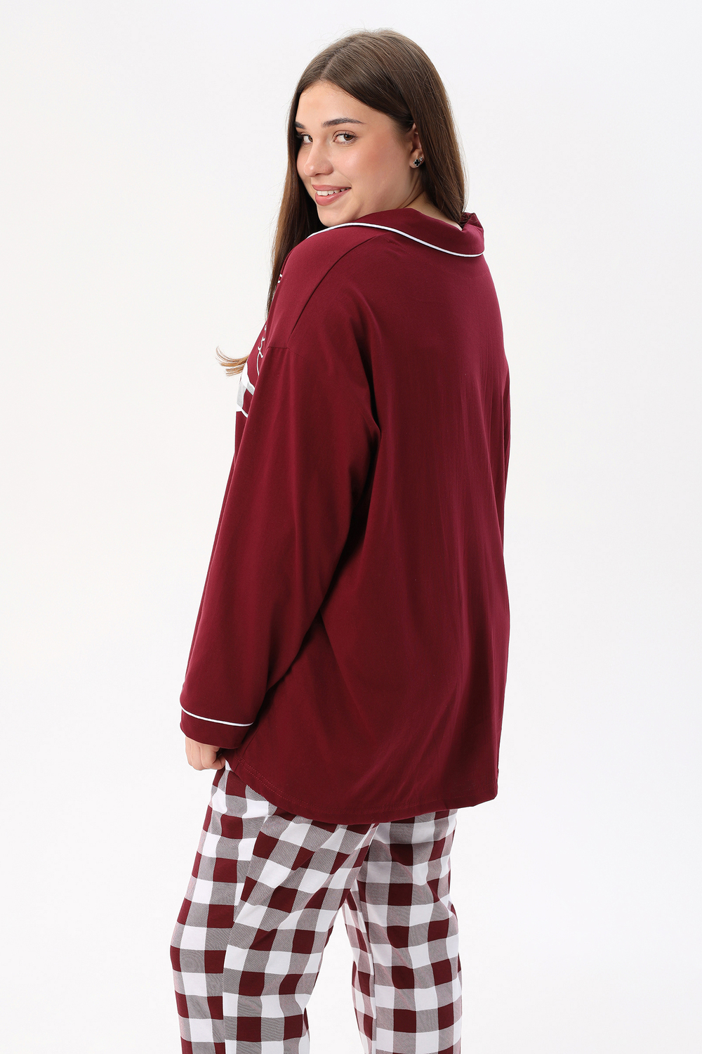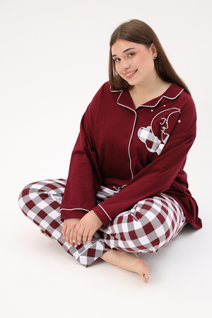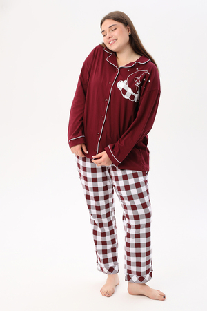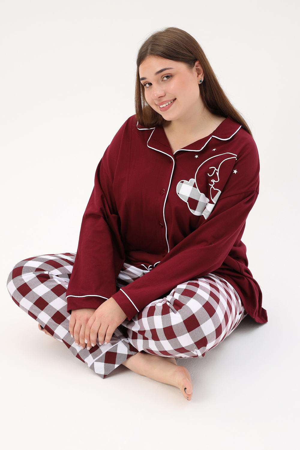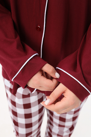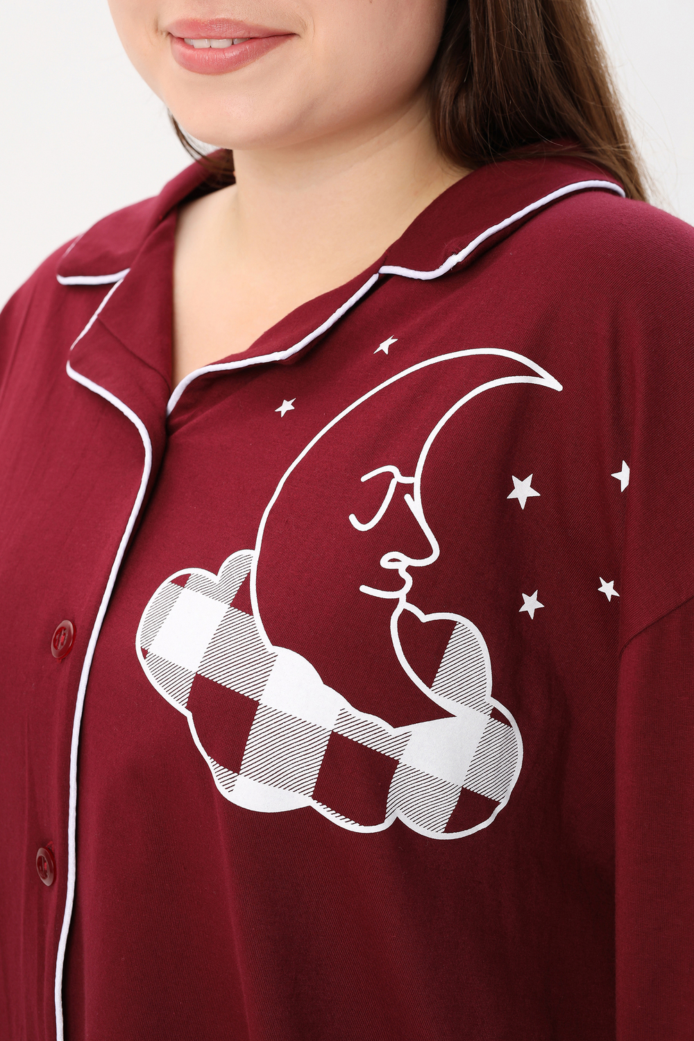 Набор пижамы "В Размере" из коллекции 2026 станет идеальным выбором для комфортного отдыха дома в прохладные осенние вечера. Этот утепленный комплект, выполненный из 100% хлопка, подарит вам ощущение нежности и тепла. Мягкая рубашка с длинным рукавом и прямые штанишки на резинке с удобными карманами в шве создают стильный и уютный образ. Рисунок в виде бордовой сетки придает пижаме особый шарм, а свободный крой обеспечивает максимальный комфорт для женщин plus size. Легкий трикотажный материал приятен к телу и не сковывает движений. Этот набор станет прекрасным подарком на Рождество или для тех, кто ценит комфорт и уют. Благодаря натуральным материалам и продуманному крою, пижама "В Размере" станет вашим любимым спутником в холодные осенние ночи.