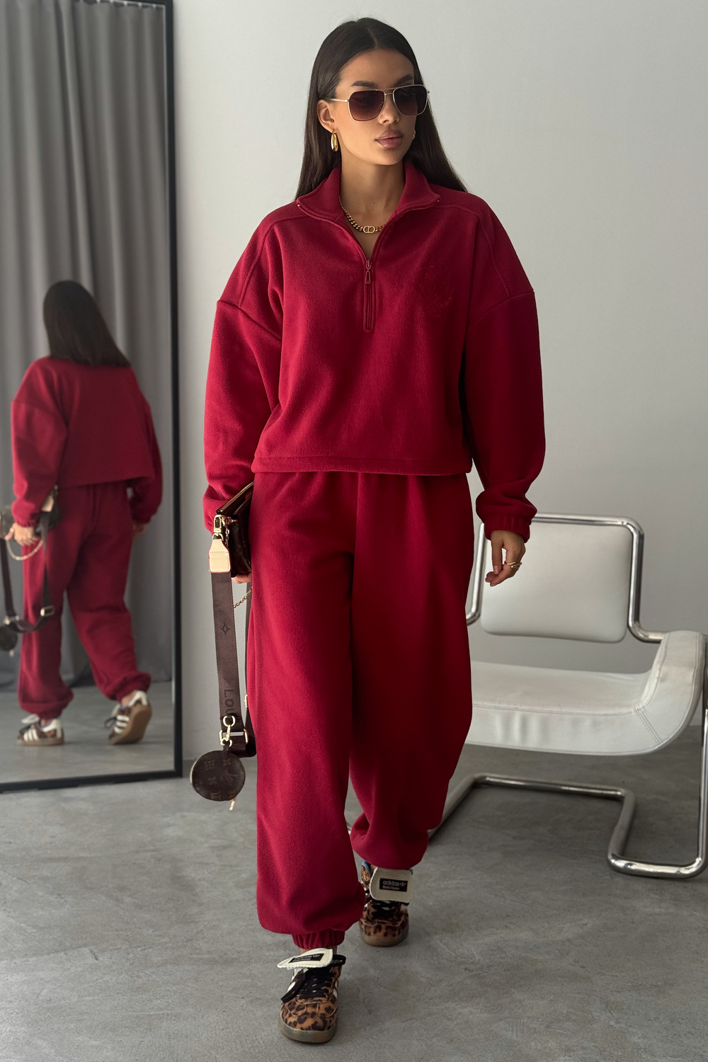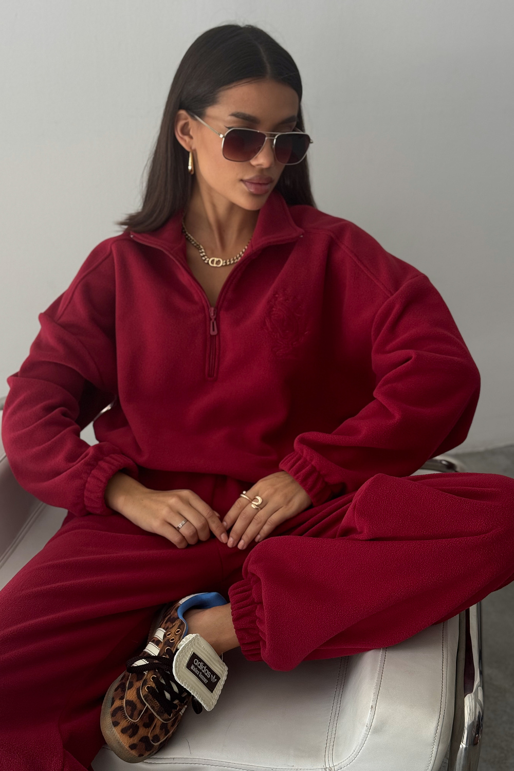 Модный женский спортивный флисовый костюм Cosmos, который станет незаменимым элементом вашего гардероба в осенне-зимний период. Костюм женский брючный флисовый теплый на молнии это именно то, что вы искали. Стильный и мягкий зип комплект включает в себя удобную халф зип толстовку с V- образным вырезом и широкие брюки, идеально подходящие как для активных прогулок, так и для расслабленного отдыха дома. Костюм на флисе изготовлен из качественного материала и достаточно утепленный. Материал мягкий и теплый, обеспечивает максимальный комфорт. Оверсайз покрой скрывает недостатки, делая силуэт стройным!