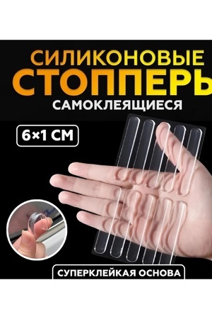 Комплект ограничителей открывания двери состоит из мягкого прозрачного силикона на клейкой основе, который не деформируется от ударов и абсолютно не боится воды. Стоппер надежно защищает стены и дверные ручки от повреждений, а также устраняет риски травм пальцев. Современный дизайн блокиратора идеально впишется в любой интерьер. Сверхпрочная клеевая основа стопера не требует сверления и надежно держится на любой чистой и ровной поверхности. Фиксатор можно повторно использовать, промыв под струей теплой воды. Самоклеящиеся демпферы не оставляют следов после использования. Универсальные самоклеящиеся силиконовые стопперы для защиты интерьера дома, мебели, техники, автомобиля и других поверхностей от повреждений. Минимизируют шум при ударе. В наборе 10 штук длиной 63 мм, шириной 10 мм и толщиной 2 мм. Прозрачный цвет обеспечивает незаметность и сохраняет эстетику интерьера. Стоппер легко клеится на любую поверхность, включая рельефные материалы.