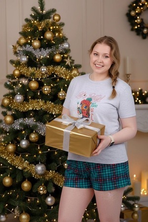 Пижама женская состоит из футболки с коротким рукавом и шортов. Футболка из однотонной кулирки с красивым принтом, шорты свободного покроя из ткани кулирка.