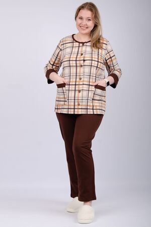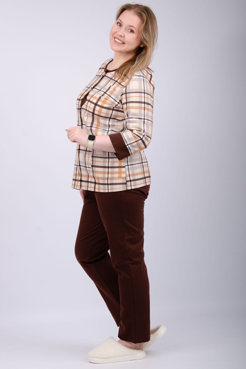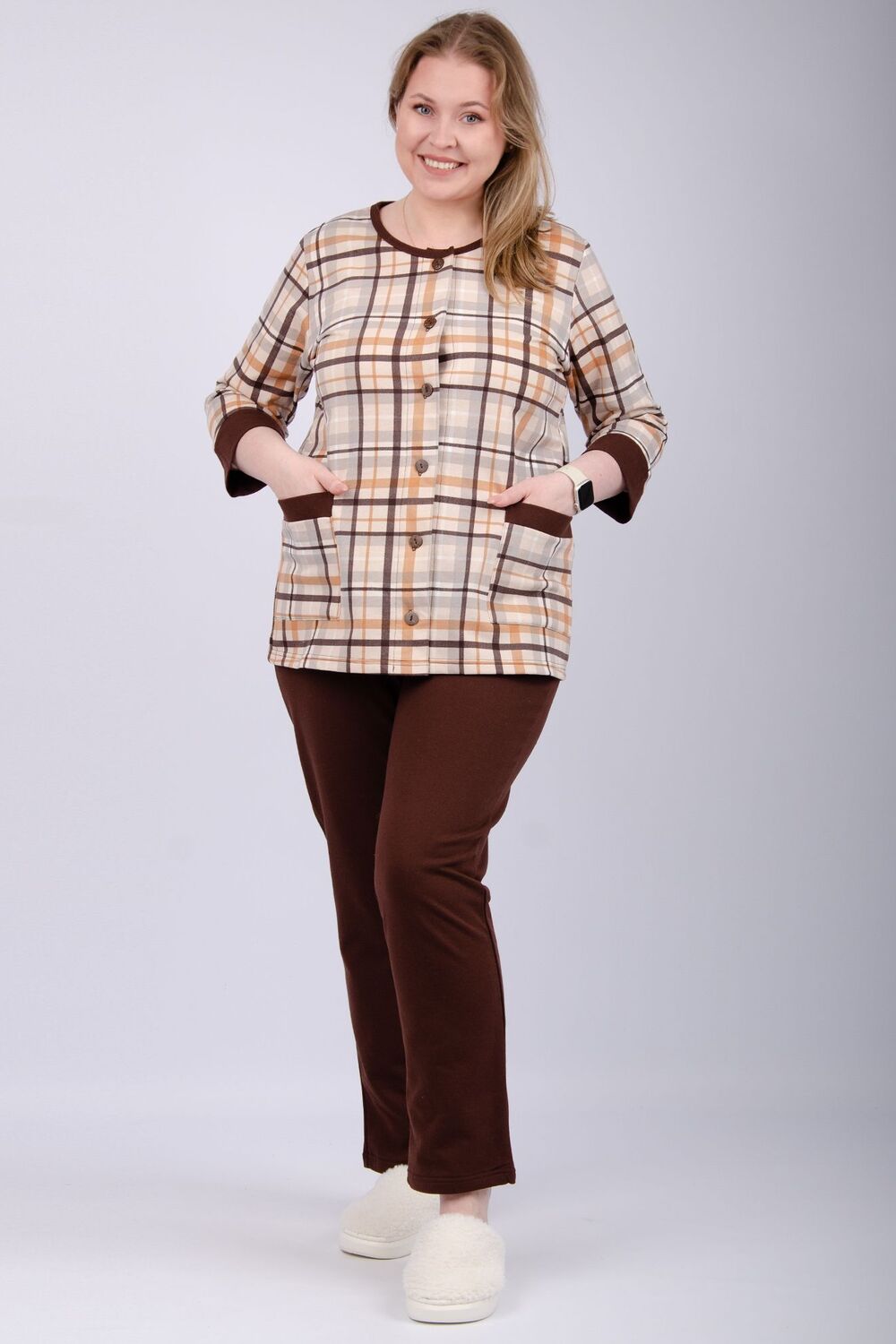 В комплект входят штаны и кофта. Свободный крой не стесняет движений и позволяет чувствовать себя комфортно во время сна или домашнего отдыха.