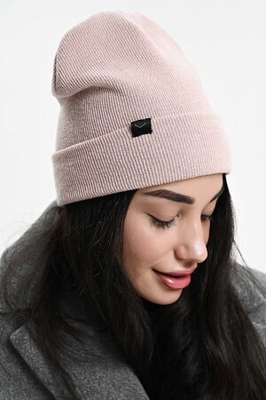Шапка теплая в рубчик с нашивкой, двусторонняя. Длина изделия в развернутом виде - 31 см.