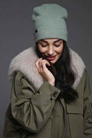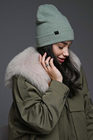 Шапка теплая в рубчик с нашивкой, двусторонняя. Длина изделия в развернутом виде - 31 см.