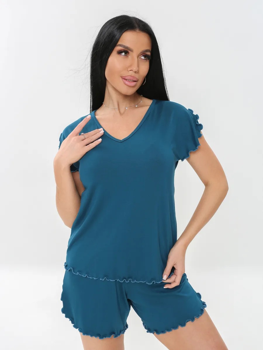 Пижама женская с шортами станет идеальным выбором для уютных вечеров дома. Она выполнена из мягкого трикотажа, что обеспечивает комфорт во время сна. Комплект для сна включает стильные шортики и удобную майку футболку, позволяя чувствовать себя свободно.