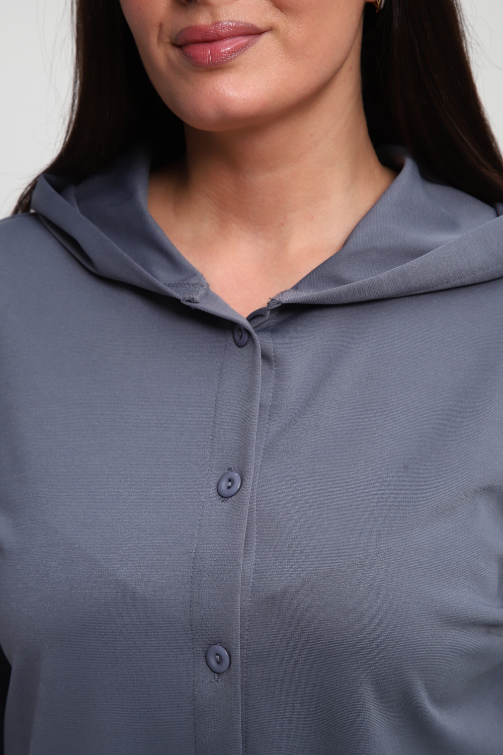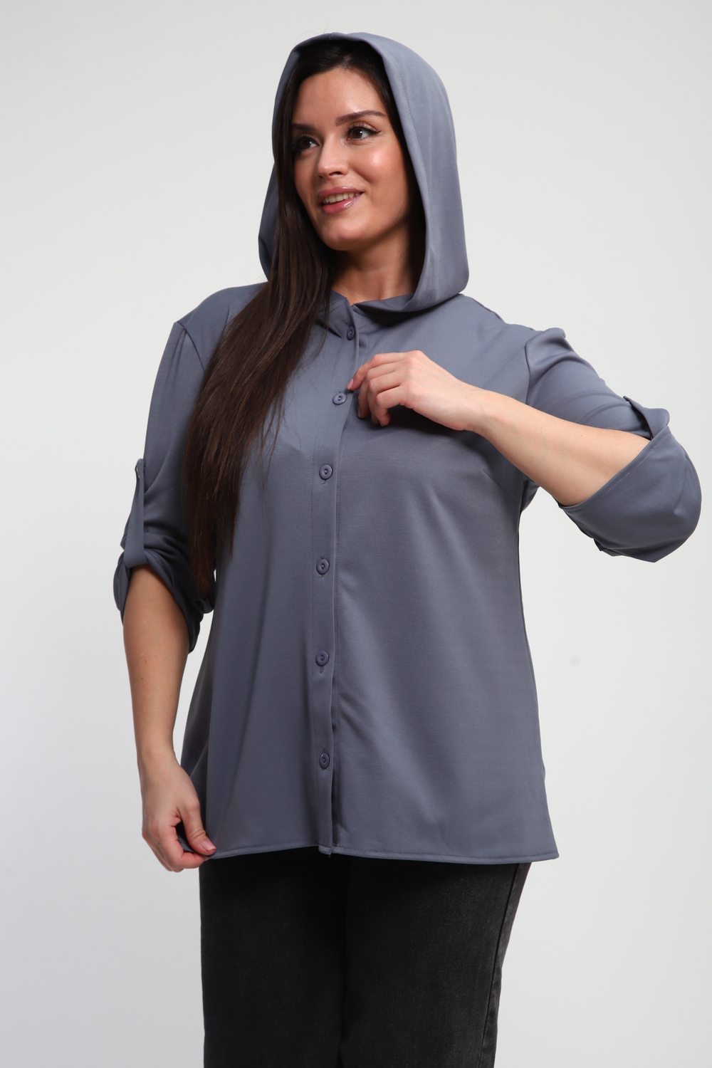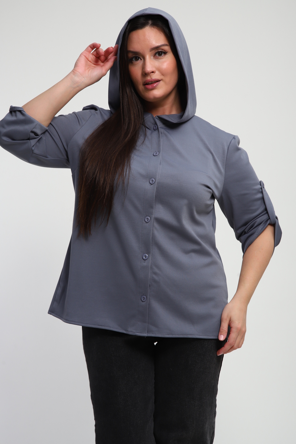 Ищете идеальную рубашку, сочетающую в себе удобство и актуальный дизайн? Наша женская рубашка на пуговицах с капюшоном – это то, что вам нужно! Выполненная из премиальной ткани "академик", она дарит ощущение мягкости и комфорта на протяжении всего дня.