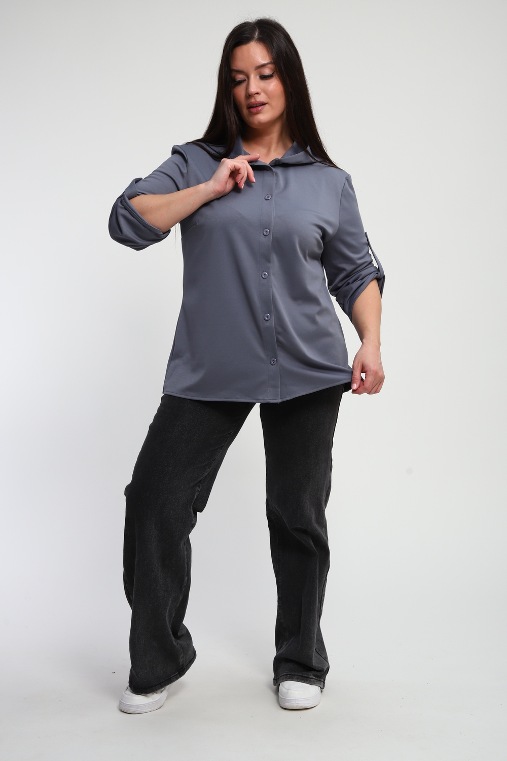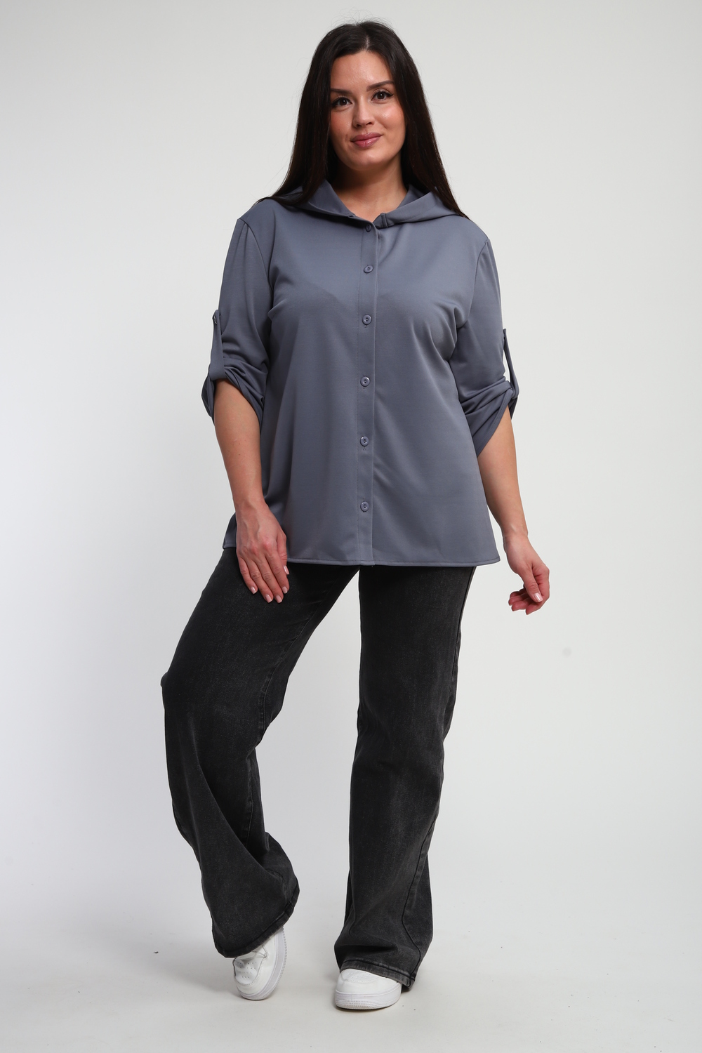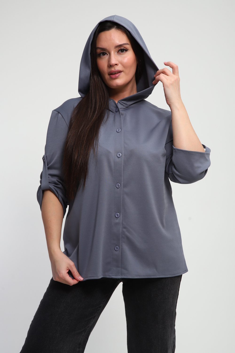Ищете идеальную рубашку, сочетающую в себе удобство и актуальный дизайн? Наша женская рубашка на пуговицах с капюшоном – это то, что вам нужно! Выполненная из премиальной ткани "академик", она дарит ощущение мягкости и комфорта на протяжении всего дня.