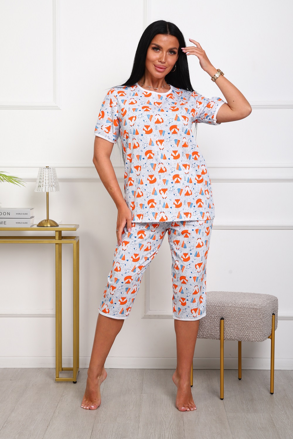 Пижама женская: футболка с короткими рукавами и бриджи. Лаконичный силуэт, максимальный комфорт без лишних деталей. Комфорт 100% хлопка.