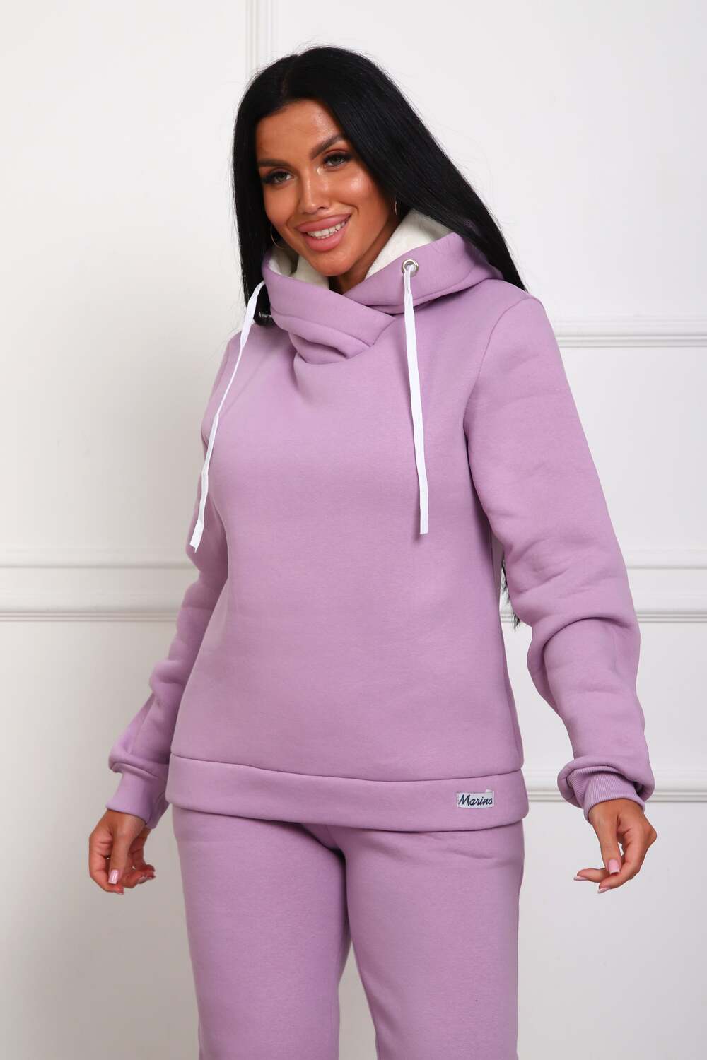 Костюм женский из футера 3-х нитки с начесом. Состоит из толстовки с капюшоном и брюк.