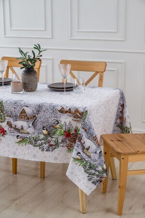 Создание атмосферы: "Студеная пора" – это не просто скатерть, это ключ к созданию незабываемой новогодней атмосферы. Она идеально дополнит ваш праздничный декор, будь то уютный семейный ужин или шумная вечеринка с друзьями.