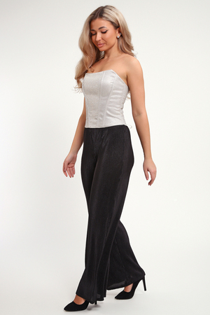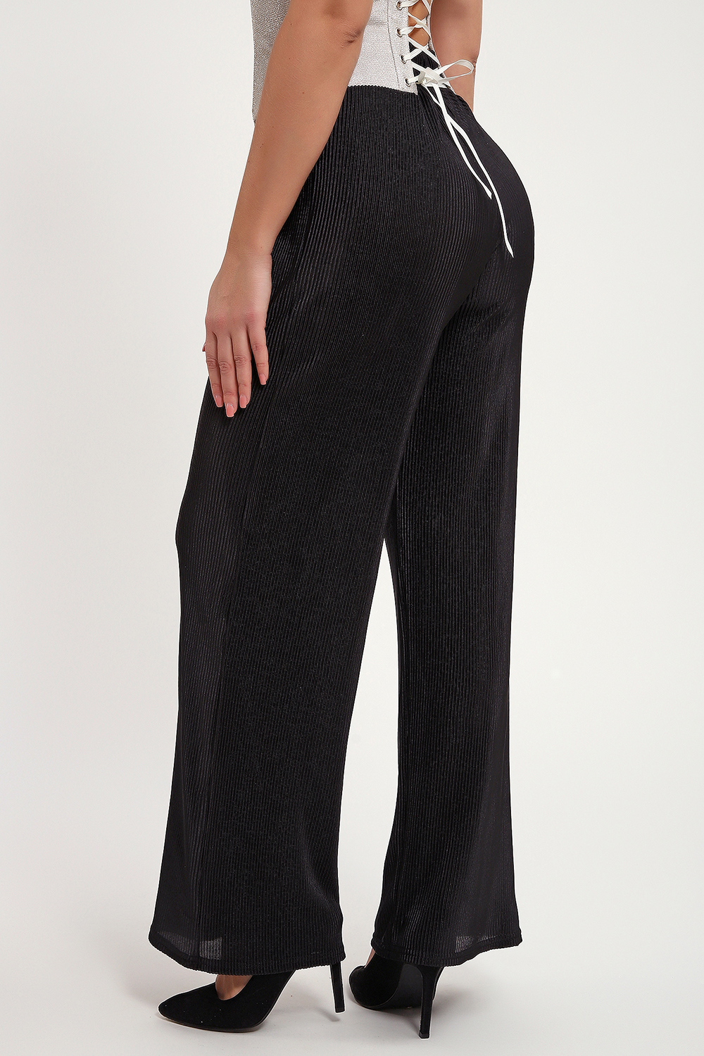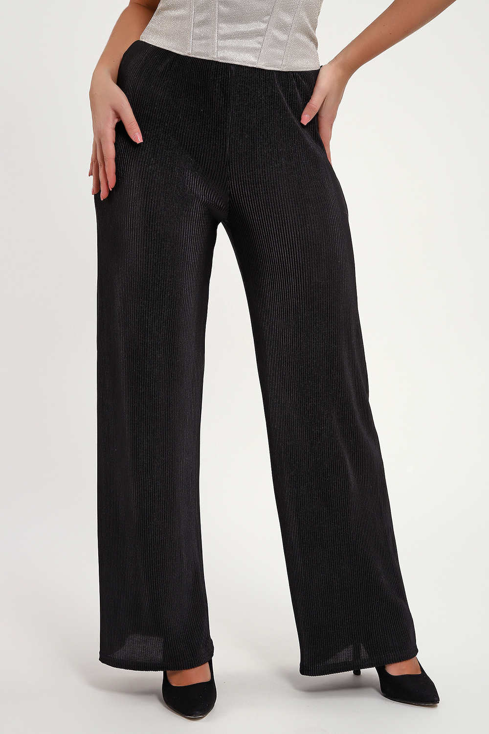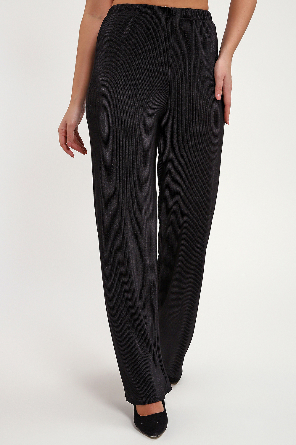 Модные широкие брюки палаццо стали классикой в современном мире моды. Свободный прямой крой брюк скрывает недостатки фигуры, обеспечивает комфорт и удобство при носке, подходит модницам любого роста. Изюминкой этих брюк является ткань - атлас гофре. Ткань имеет гофрированную структуру, приятна к телу, совершенно не мнется, хорошо тянется, но не деформируется. Легкая струящаяся ткань хорошо драпируется и имеет приятный блеск. Завышенная посадка по талии, удобный пояс на резинке. Брюки незаменимы в качестве повседневной одежды на работе и в офисе, а также для прогулки летом и как домашняя одежда. А если вы подберете к ним нарядную блузку, то будете отлично выглядеть на празднике или вечеринке.