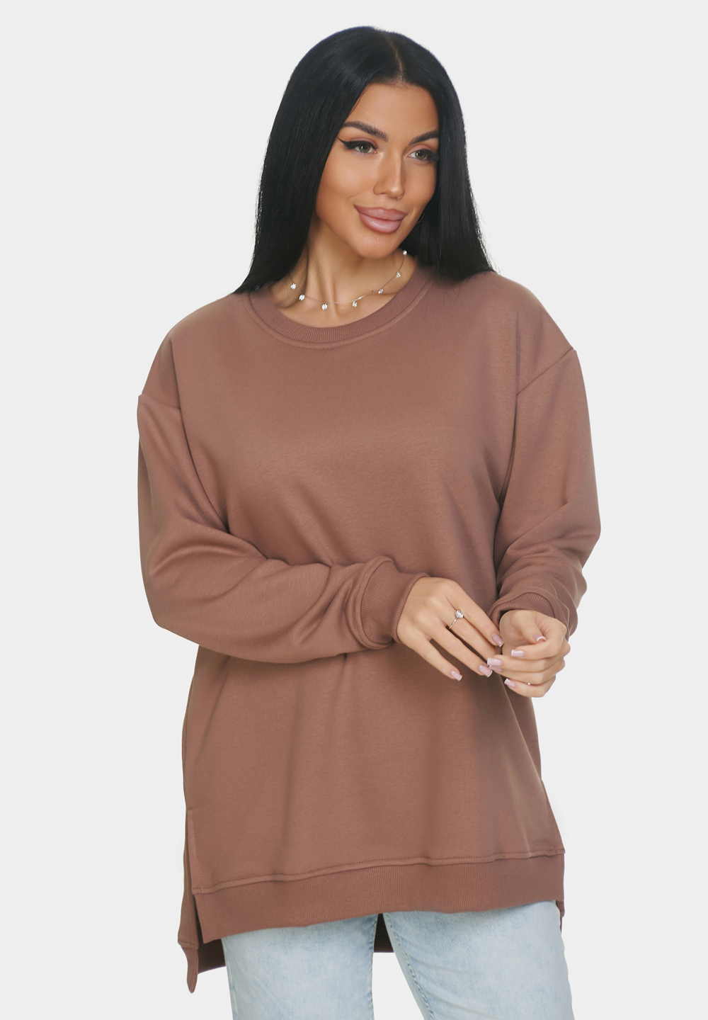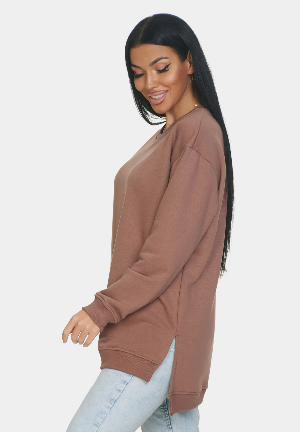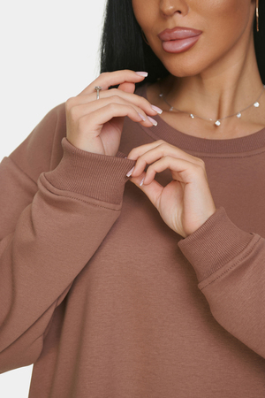 Базовая оверсайз кофта со спущенным рукавом на все случаи жизни. Манжеты и горловина выполнены из эластичного материала кашкорсе. Идеально подходит для прохладной погоды. Материал изделия - 3-х ниточный футер-петля. Без начеса.