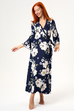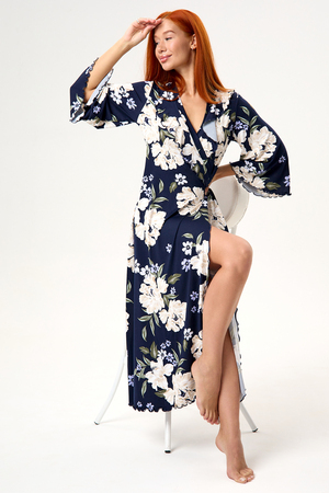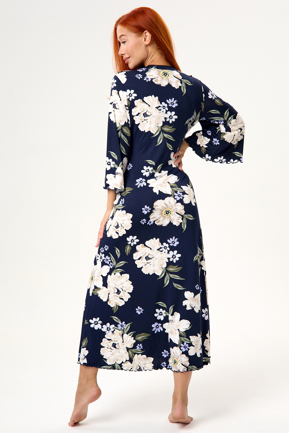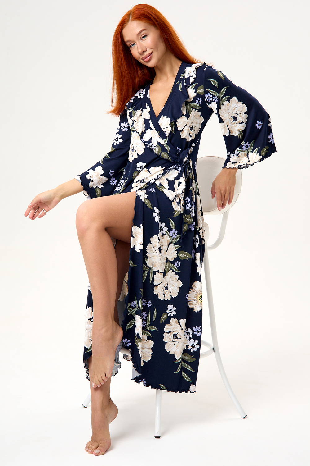 Халат домашний трикотажный женский - это отличное дополнение к вашей коллекции одежды для дома, созданной для тех, кто любит быть яркой и стильной, даже находясь в уютном уголке своего дома. Длинный халат с запахом имеет полуприлегающий силуэт, расклешенный к низу, длиной до середины икры. Линия талии завышена, что создает элегантный и изящный силуэт. На полочках, в области груди, расположены изящные воланы, которые добавляют изюминку к образу, подчеркивая женственность. Рукав в тачной, длиной 3/4, смотрится легко и элегантно, это делает его удобным в использовании. Подойдет как стройным женщинам, так и дамам с пышными формами. Идеально для подарка. Благодаря крою подойдет на маленькие и большие размеры, беременным и кормящим мамочкам. Возьмите халатик в роддом и будете самой элегантной мамочкой. Наш халат – это идеальный выбор для приятного времяпрепровождения в уютной обстановке. Сочетая в себе красоту и удобство, он идеально подходит для женщин, которые ценят качество во всем.