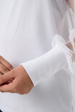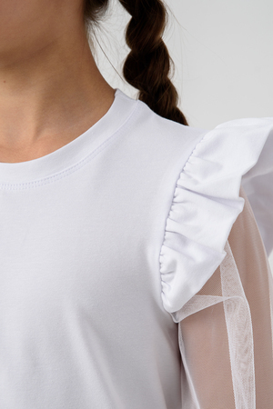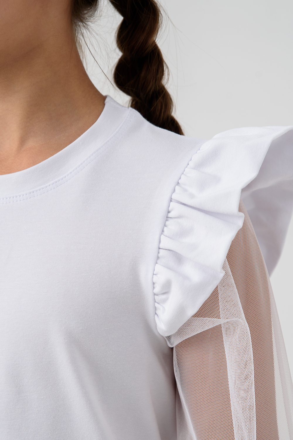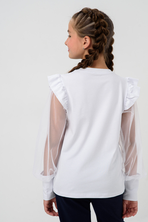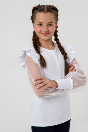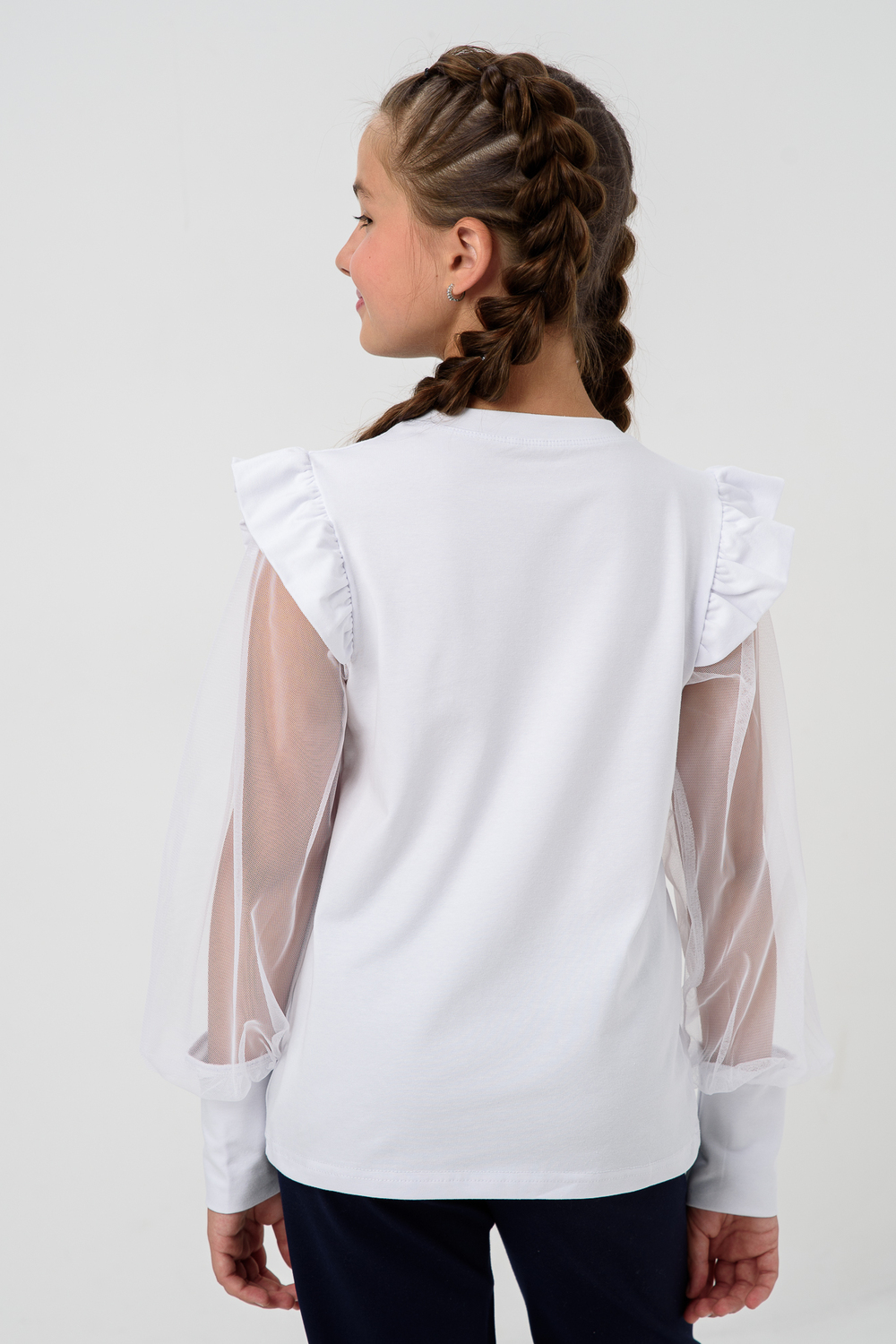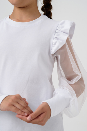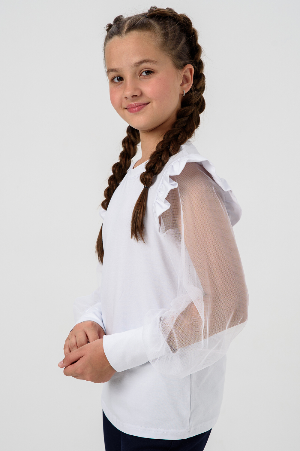 Стильная школьная блузка для девочки подростка с рукавами из фатина. Красивый джемпер для девочек подростков на каждый день.
