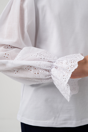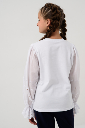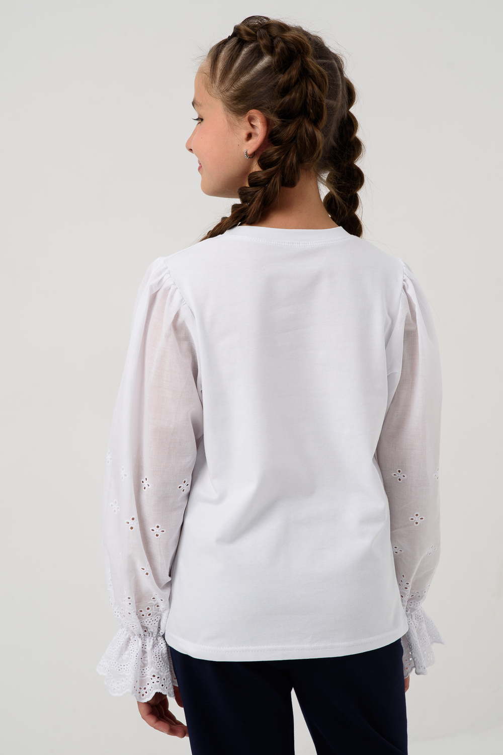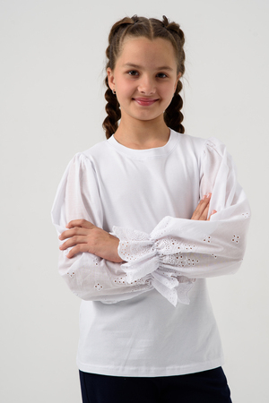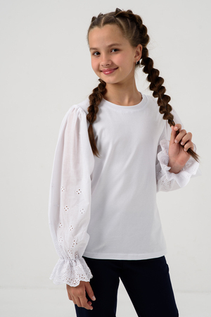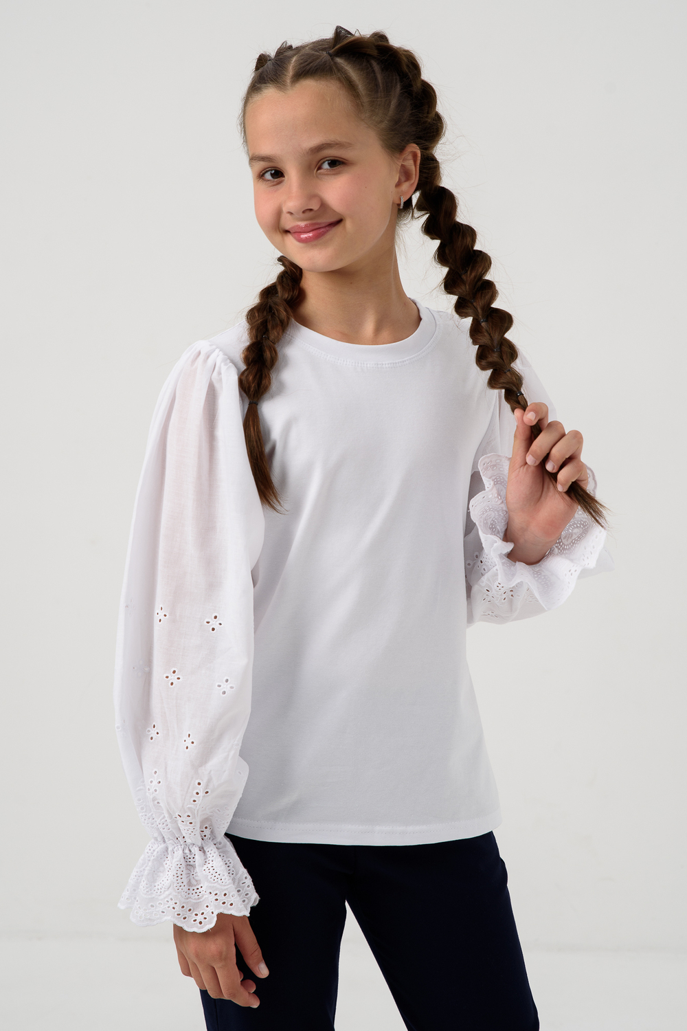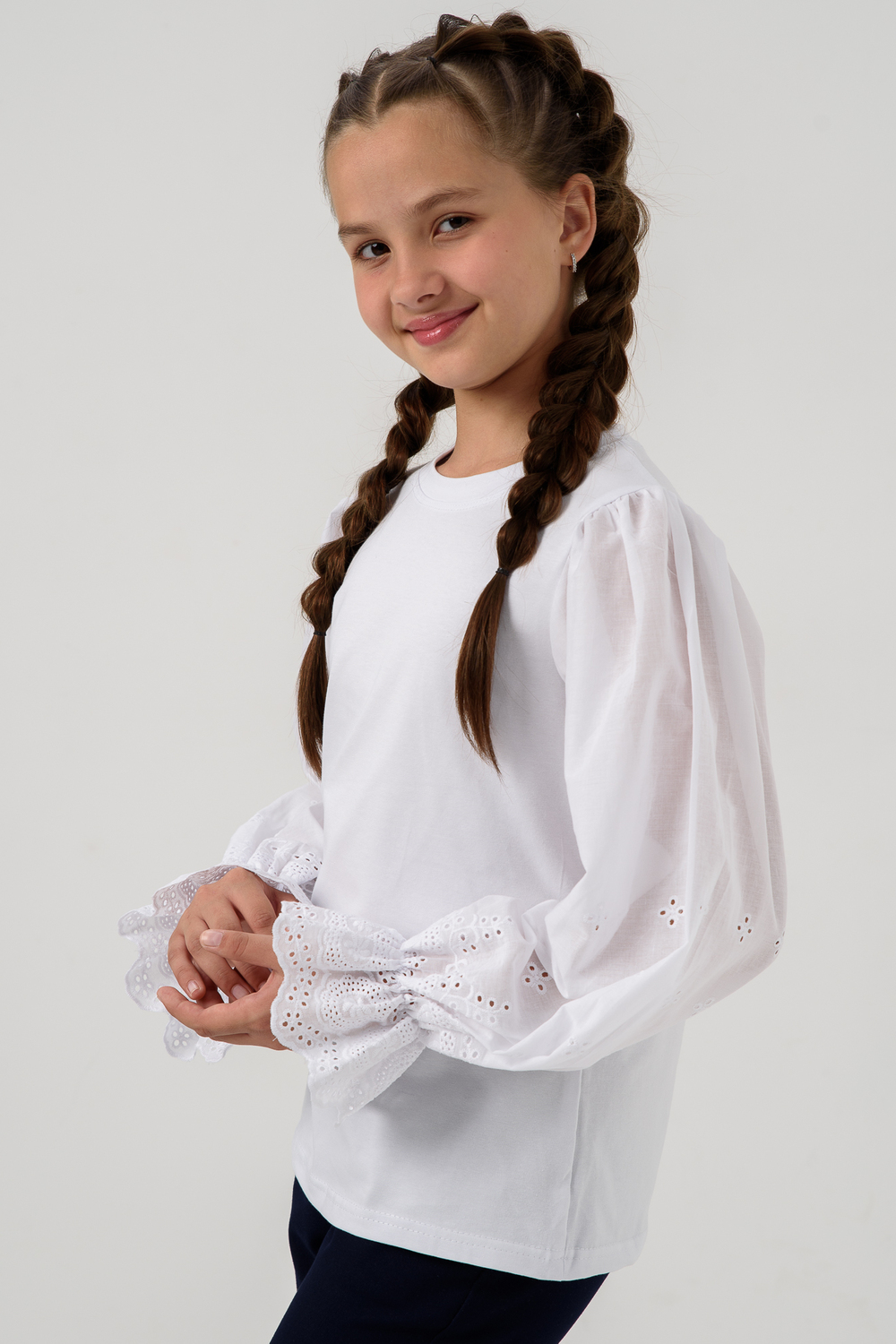 Школьная блузка с длинными, пышными рукавами, выполненными из хлопковой ткани шитье. Джемпер украсит и дополнит любой образ в школу. Красивый джемпер для девочек подростков на каждый день.