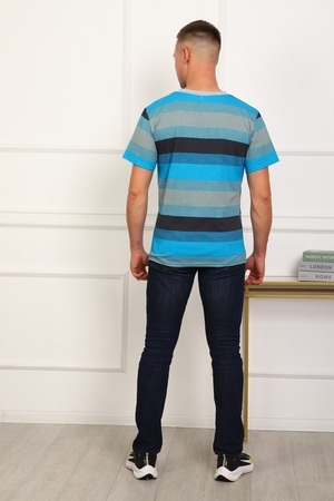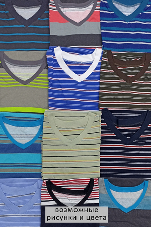 Футболка мужская в полоску, с короткими рукавами, комфорт 100% хлопка. Цвет: ассорти (Внимание! Данный товар по цвету не подбирается, возможные варианты расцветок представлены на фото).