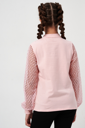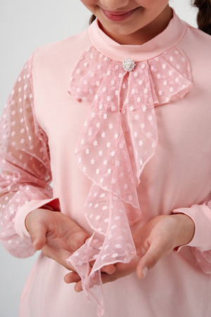 Блузка школьная для девочек с длинными рукавами из фатина. Красивый джемпер для девочек с жабо на каждый день.