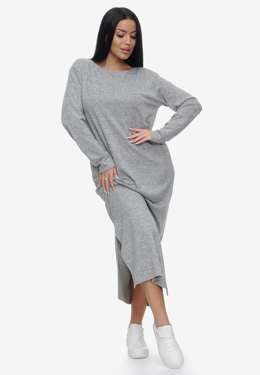 Ощути комфорт и стиль каждый день! Мягкое трикотажное платье из ангоры софт нежно обнимает фигуру и не сковывает движений. Разрезы по бокам добавляют изюминку и визуально вытягивают силуэт. Идеально подходит для прогулок, офиса, встреч с друзьями и уютных вечеров.