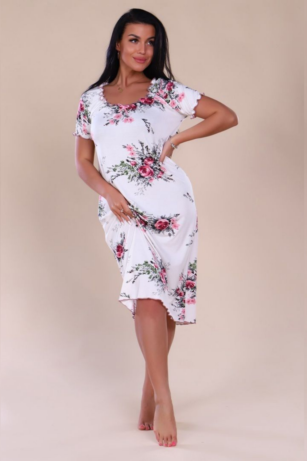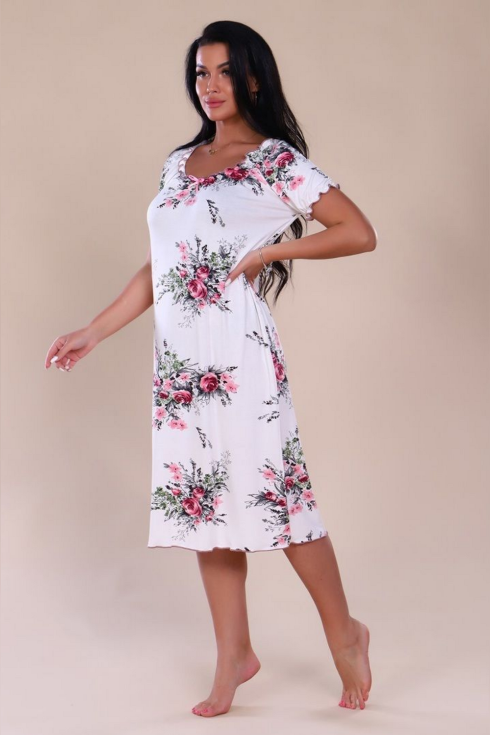 Сорочка из вискозы - маленькая женская радость. Элегантная женская сорочка сшита из легкой струящейся вискозы. Ткань нежная, приятная на ощупь, она не мнется.