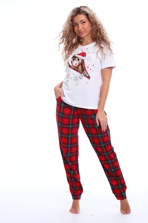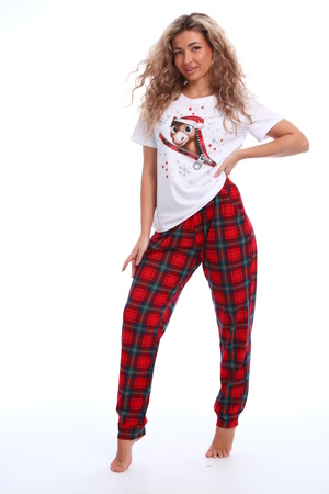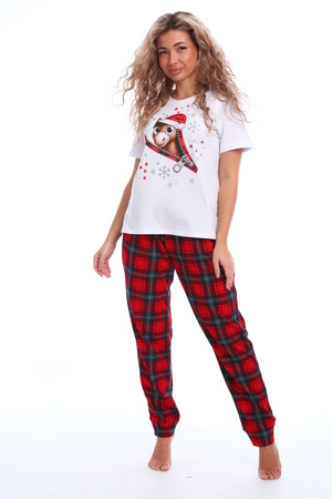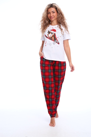 Мы рады представить тебе милую и уютную одежду для сна и отдыха, которая станет неотъемлемой частью твоего домашнего комфорта в Новый год и в самый романтичный день года – День святого Валентина! Комплект состоит из белой футболки с забавным принтом лося и красных штанов в клетку. Этот легкий костюм из мягкого хлопка подарит незабываемое ощущение нежности и уюта в холодные зимние дни, позволяя тебе чувствовать себя комфортно и стильно.