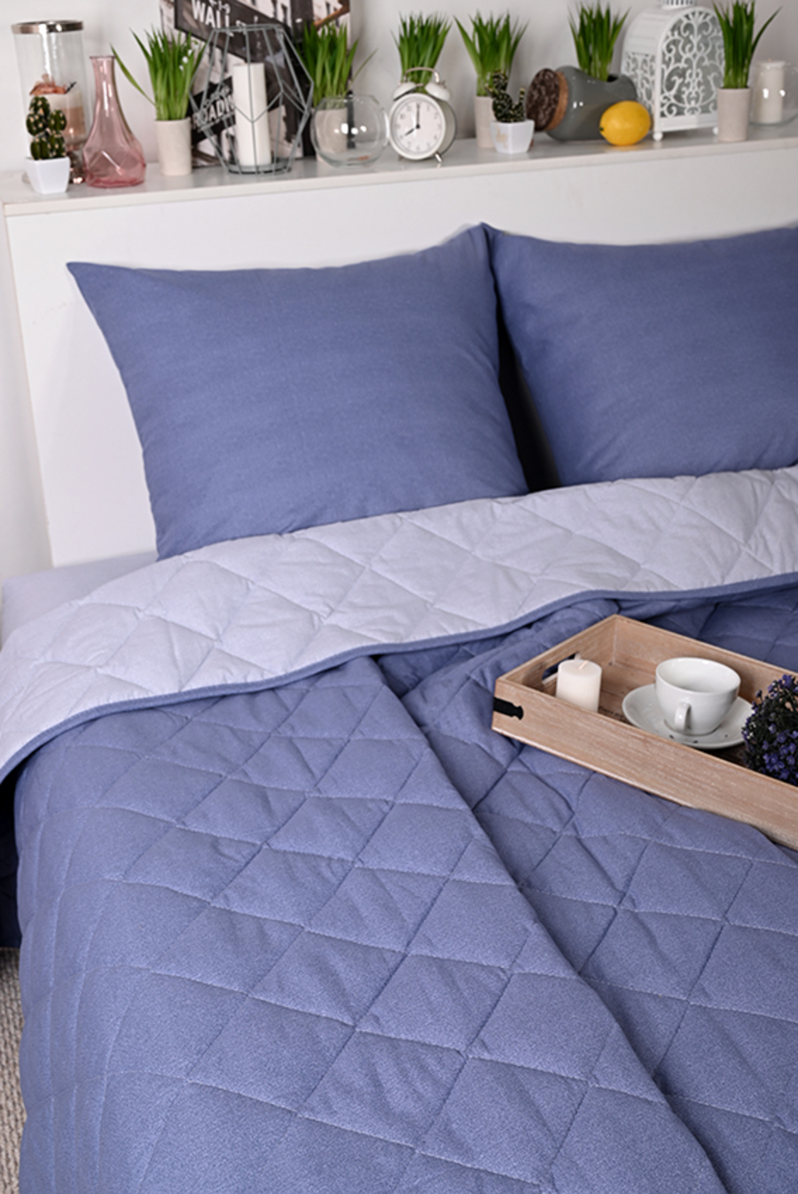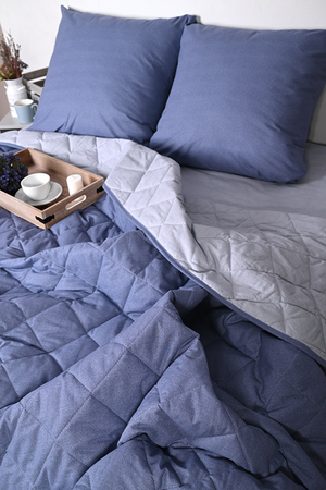 Уникальность набора в том, что в него входят: наволочки, простыня и легкое всесезонное одеяло. Это современное и очень удобное решение, которое идеально подходит тем, кто хочет быстро застилать кровать. Покупая постельные комплекты с одеялом вы экономите на покупке отдельного одеяла. Так же одеяло можно использовать как покрывало, используя его с двух сторон. Комплект легко стирается в обычной машине.