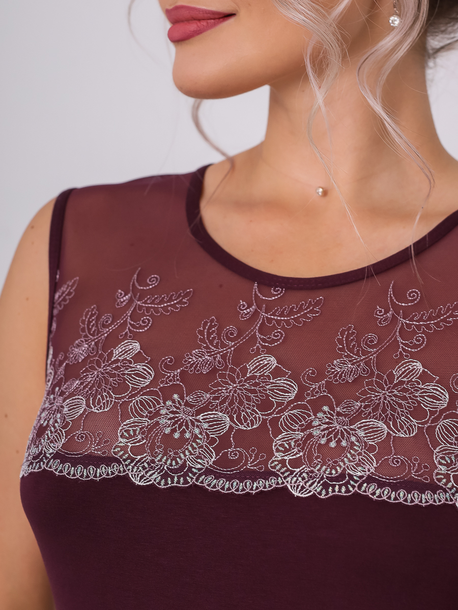 Ночная сорочка женская без рукава - идеальное решение для женщин и девушек, которые ценят комфорт и стиль. Ночнушка короткая, выполнена из вискозного полотна, состав ткани (92 % вискоза и 8% эластан) и обеспечивает оптимальный уровень воздухопроницаемости, позволяя коже дышать во время сна. Главная особенность этой сорочки - вырез горловины с округлой формой, который украшен сеткой, выполненной из высококачественного кружева премиум класса и прекрасно подчеркнет Вашу женственность. Это добавляет модели нежности и элегантности, придавая Вам роскошный и соблазнительный образ. Сорочка предлагается в больших размерах, чтобы каждая женщина смогла найти свой идеальный вариант. Она идеально сочетается с любым типом фигуры, подчеркивая все ваши достоинства и скрывая недостатки. Погрузитесь в мир комфорта и стиля с этой рубашкой больших размеров. Она станет вашим незаменимым спутником для приятных и уютных моментов перед сном или утренних часов отдыха. Стильная, эротичная и сексуальная спальная вещь для дома.
