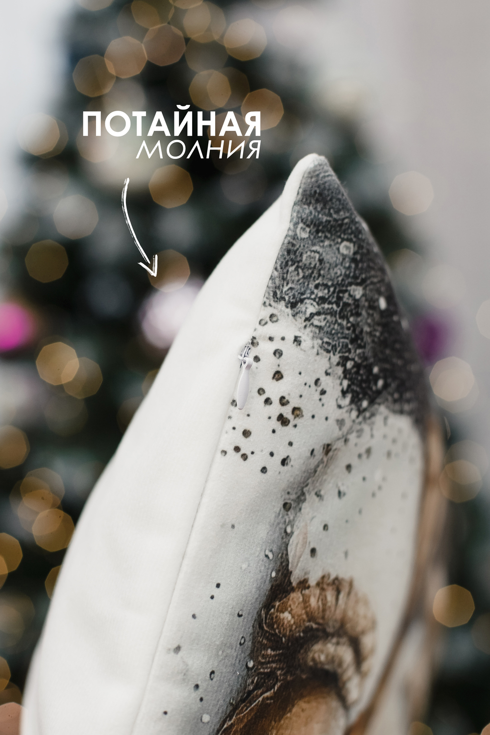 Новогодняя наволочка 45×45 см выполнена из качественного материала. Лицевая сторона украшена выразительным 3Д рисунком на новый год, который придаёт интерьеру глубину и настроение праздника, а обратная сторона — однотонная, что облегчает сочетание с другими элементами декора. Ткань мягкая, гладкая и очень приятная на ощупь, дарит тактильный комфорт при прикосновении и выглядит элегантно вблизи. Мягкий материал обеспечивает износостойкость, устойчивость к выцветанию и простоту ухода — наволочка легко стирается, быстро сохнет и сохраняет форму даже после многократных стирок. Потайная молния аккуратно спрятана в шве и не нарушает целостности узора, позволяя быстро снять чехол для стирки и при этом сохранять аккуратный внешний вид. Изделие мало мнётся и долговечно, поэтому прекрасно подходит для повседневного использования в спальне, гостиной или детской, а также станет стильным и практичным подарком на Новый год 2026. Сочетание визуальной выразительности рисунка с гномом и снеговиком, делает эту наволочку универсальным элементом, который добавит уюта и современности любому интерьеру. Её универсальный размер подходит как для дивана, так и для кресла, а также может украсить спальню или гостиную. Эта наволочка станет чудесным подарком на Новый год для мамы или сестры, принося радость и уют в их повседневную жизнь. Создайте атмосферу праздника и заботы с этой очаровательной наволочкой!