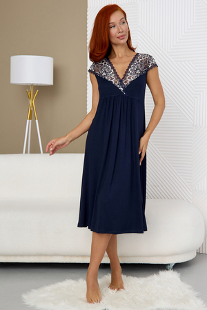 Ночная сорочка женская длинная из вискозного полотна. Ночнушка А-силуэта полуприталенного кроя. Эффектная и стильная рубашка для сна и отдыха – отличный наряд для дома. Рукав крылышком и глубокий вырез горловины сделаны из эластичного кружева. Кружевной вырез подчеркивает зону декольте. Состав ткани 92 % вискоза и 8 % эластан. Ночнушку удобно надеть и для сна и использовать как домашнее платье. Натуральная шелковистая ткань позволяет коже дышать, превращает сорочку в комфортную одежду для дома. Эластичное и эффектное кружево добавляет сексуальности и женственности. Она понравится тем, кто ищет удобную и красивую ночную одежду. Данная модель подходит для девушек и женщин всех возрастов, благодаря крою подойдет для беременных и кормящих мам.