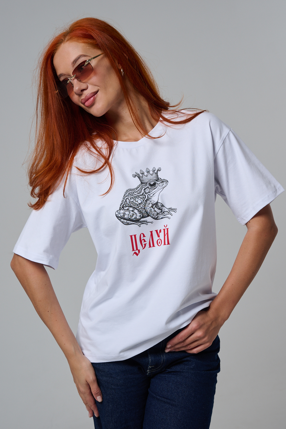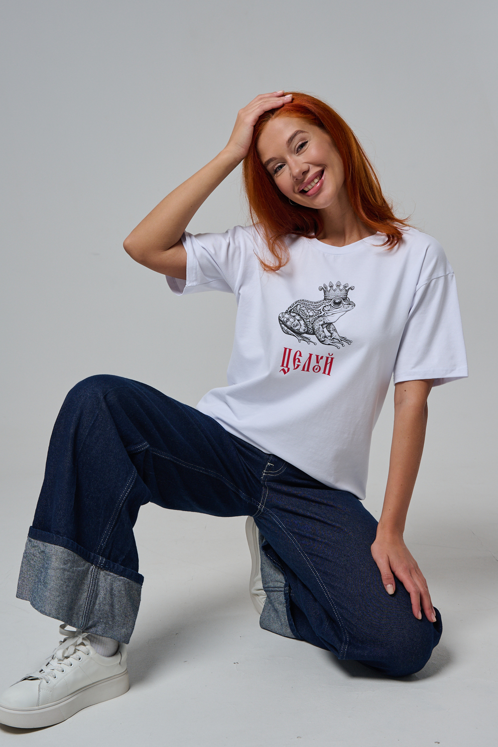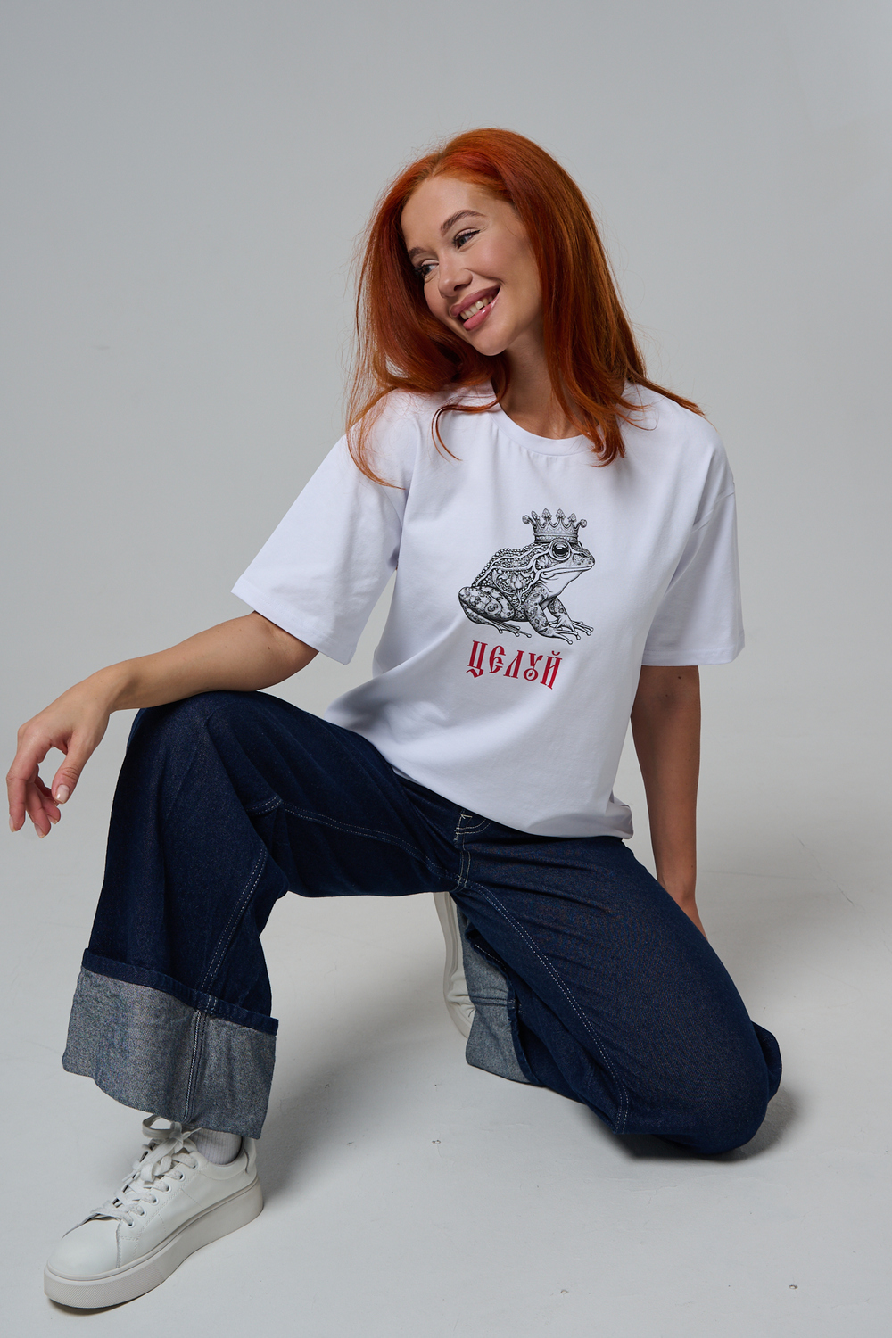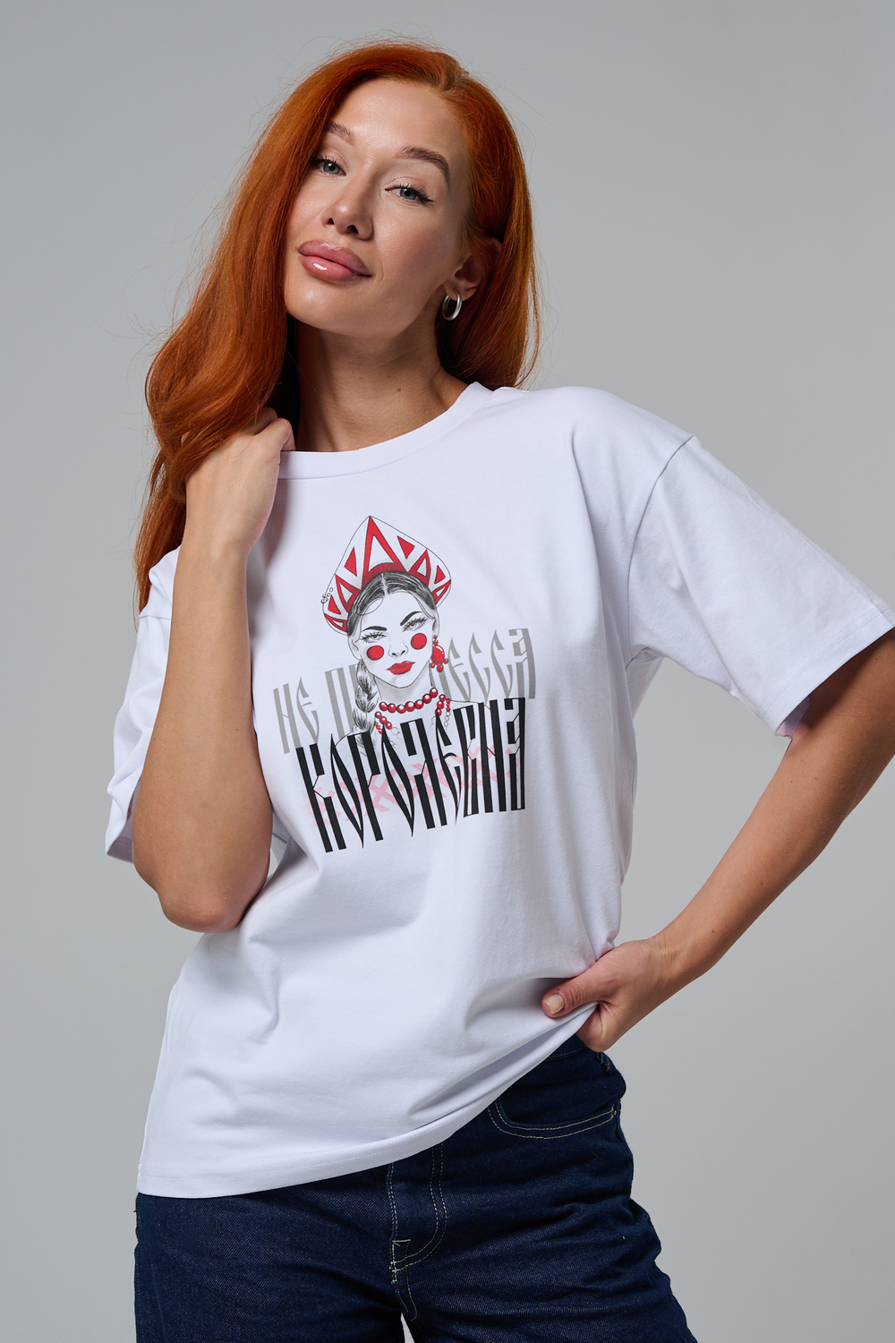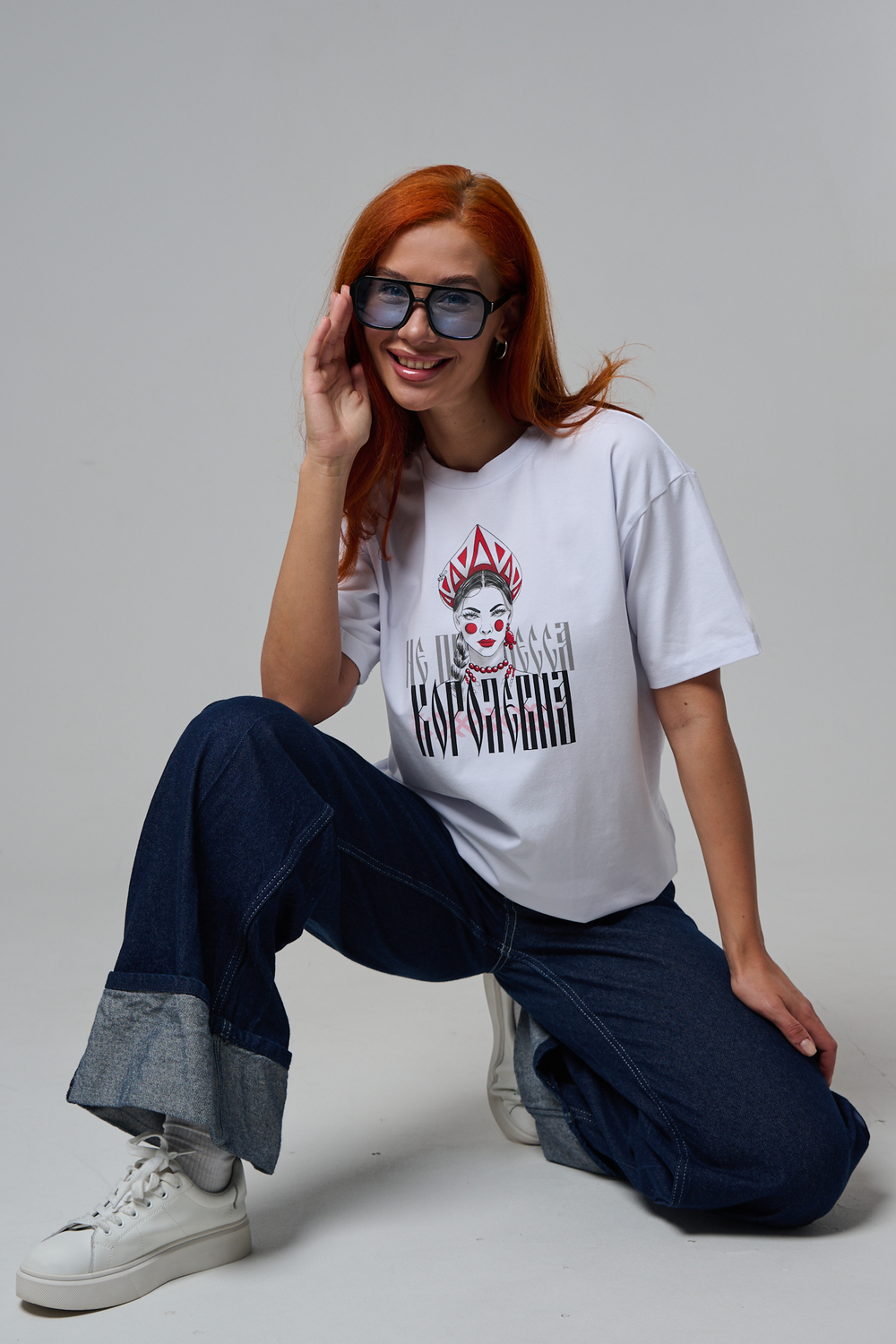 Представьте: вы — королева своего стиля, а на груди — императрица! Наша белоснежная oversize-футболка превращает повседневность в сказку с долей иронии. Мягкий хлопок дарит непревзойденный комфорт: дышащий, не липнет к телу и идеально сидит на любой фигуре, подчеркивая свободу и расслабленность.
