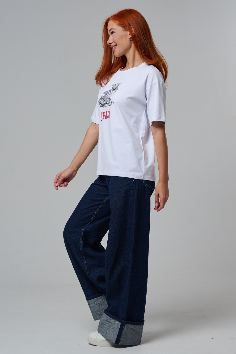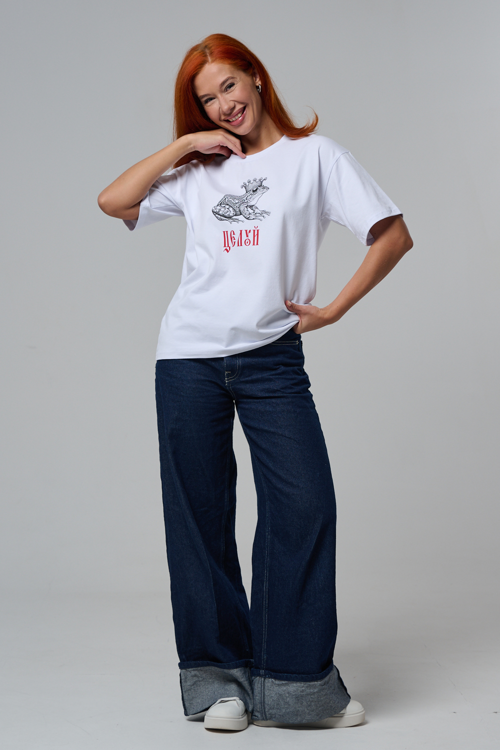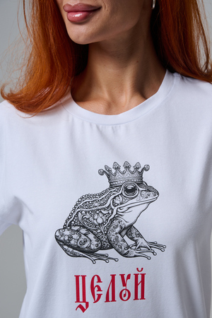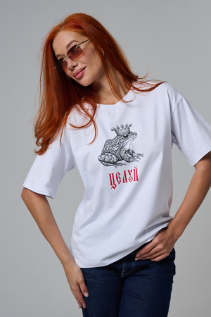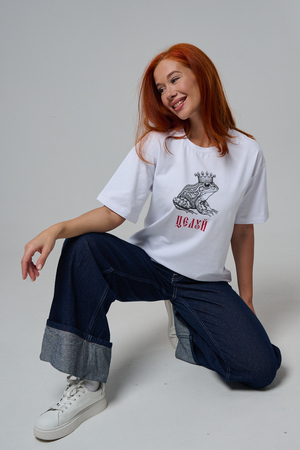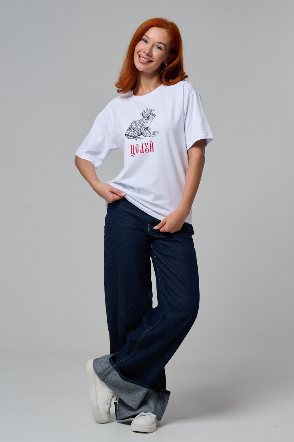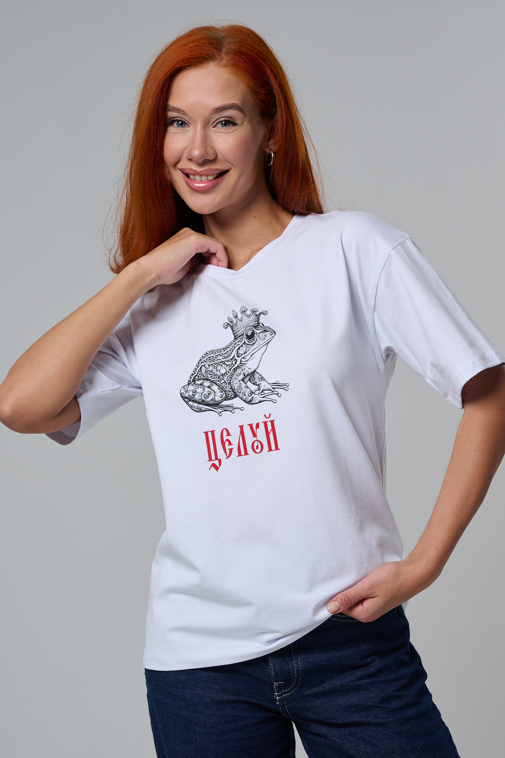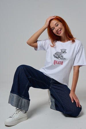 Представьте: вы — королева своего стиля, а на груди — императрица! Наша белоснежная oversize-футболка превращает повседневность в сказку с долей иронии. Мягкий хлопок дарит непревзойденный комфорт: дышащий, не липнет к телу и идеально сидит на любой фигуре, подчеркивая свободу и расслабленность.