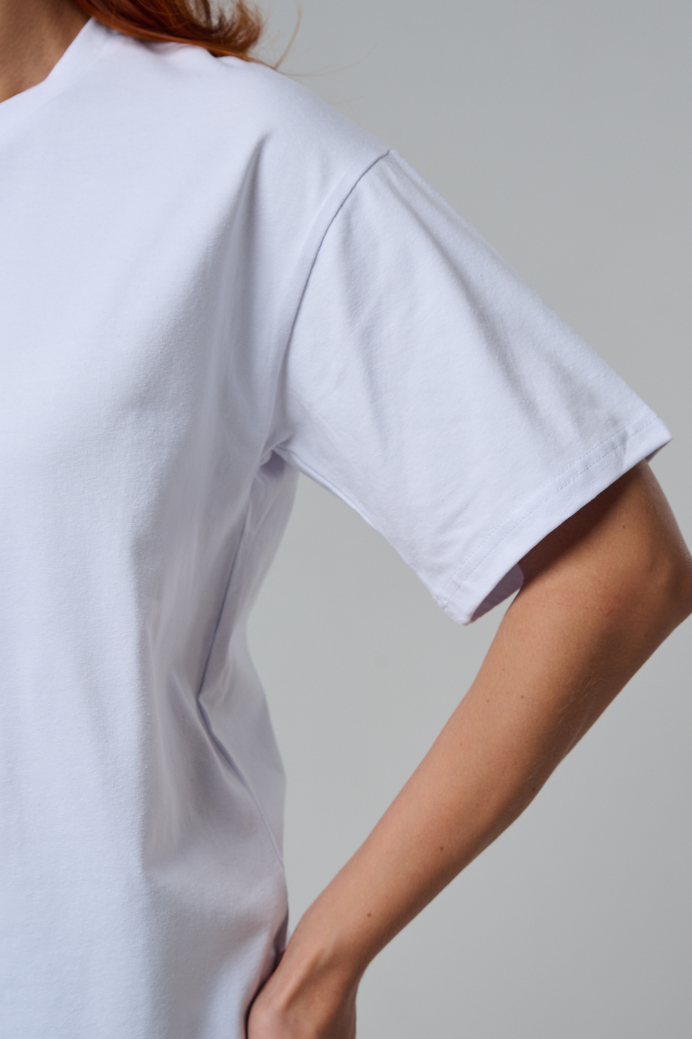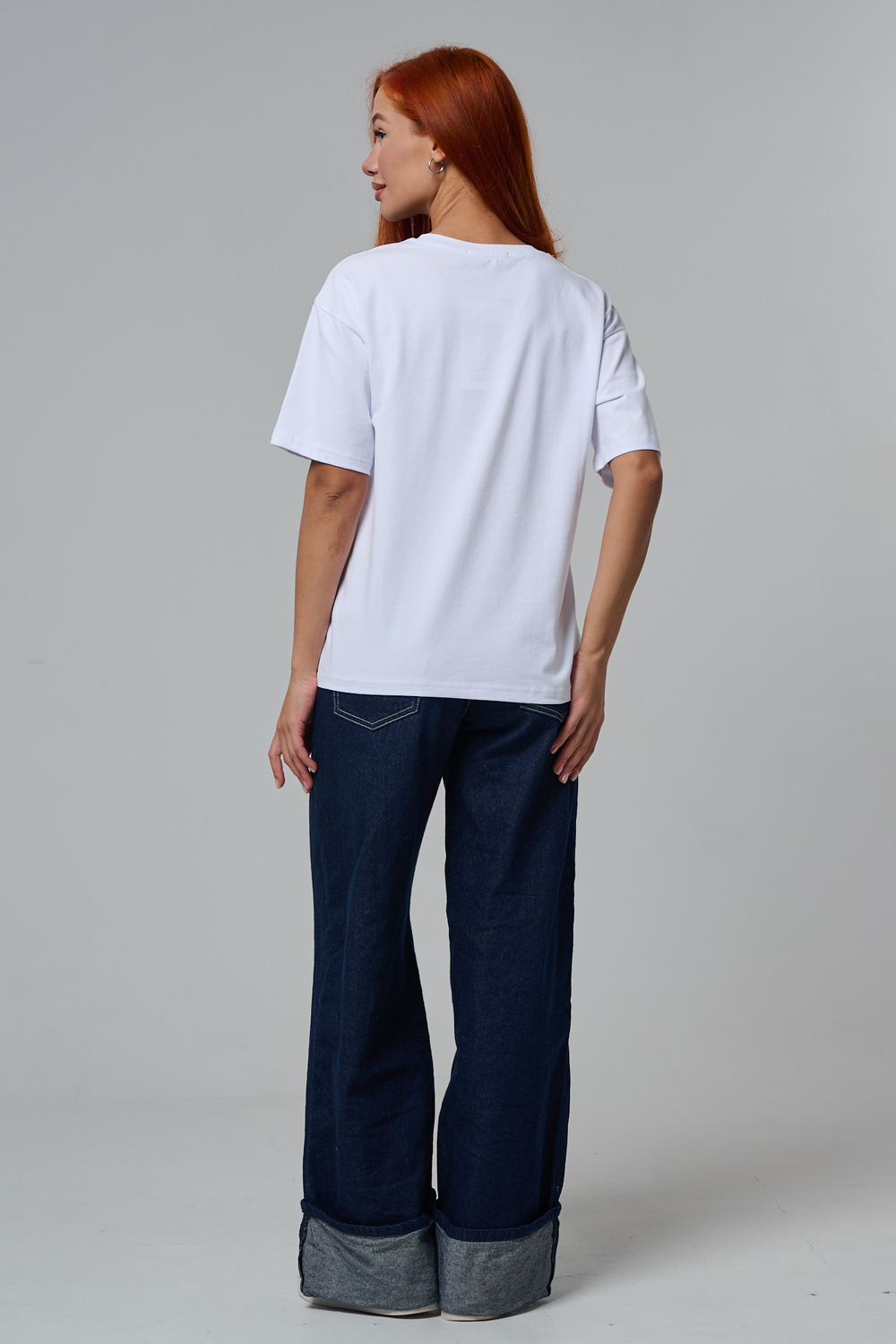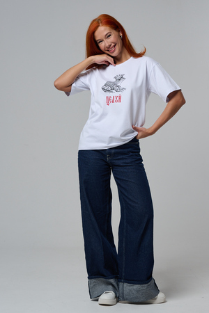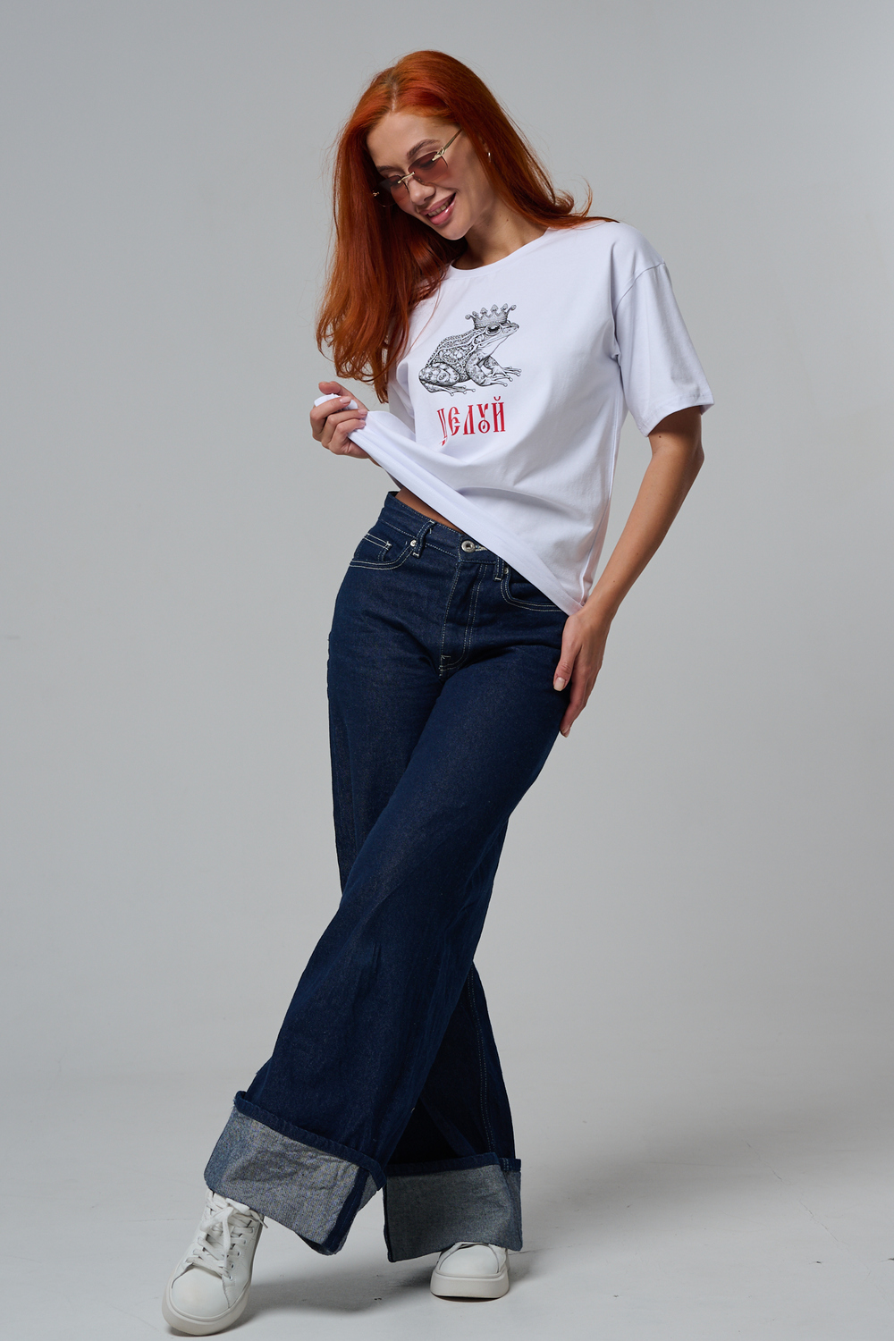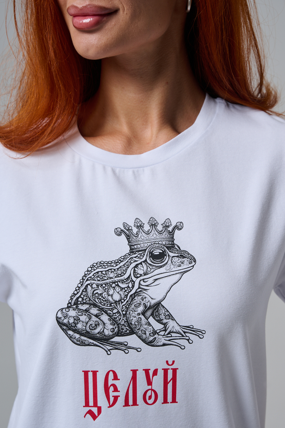 Представьте: вы — королева своего стиля, а на груди — императрица! Наша белоснежная oversize-футболка превращает повседневность в сказку с долей иронии. Мягкий хлопок дарит непревзойденный комфорт: дышащий, не липнет к телу и идеально сидит на любой фигуре, подчеркивая свободу и расслабленность.
