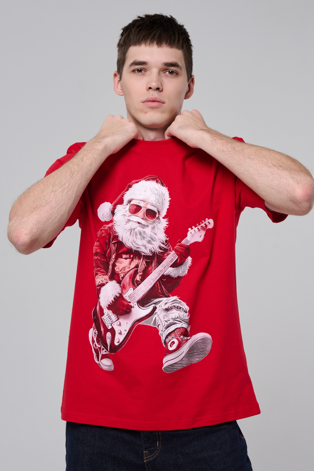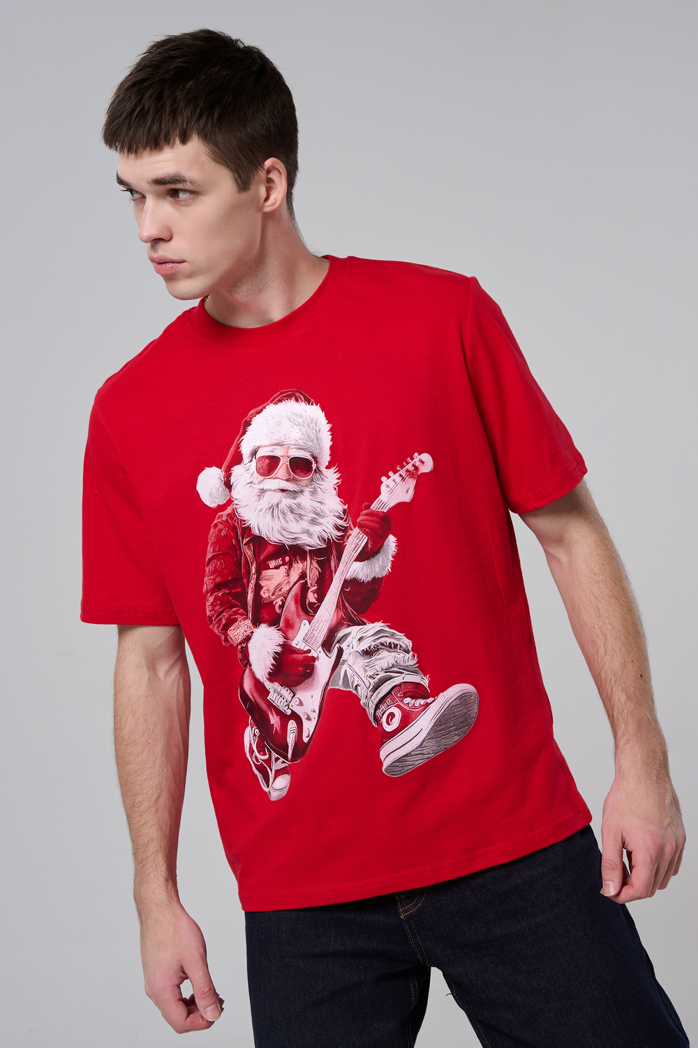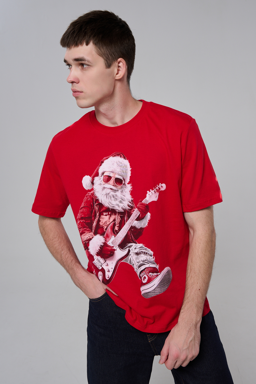 Представьте: Новый год, вечеринка в разгаре, а вы в стильной красной футболке с Сантой, который не просто раздает подарки, а зажигает на полную! На одной версии – Santa DJ в наушниках, миксует треки за пультом. На второй – Santa Rocker с гитарой, в прыжке, готовый к соло! Дизайн в белом и красном – яркий, юмористичный и супер-актуальный для праздников.