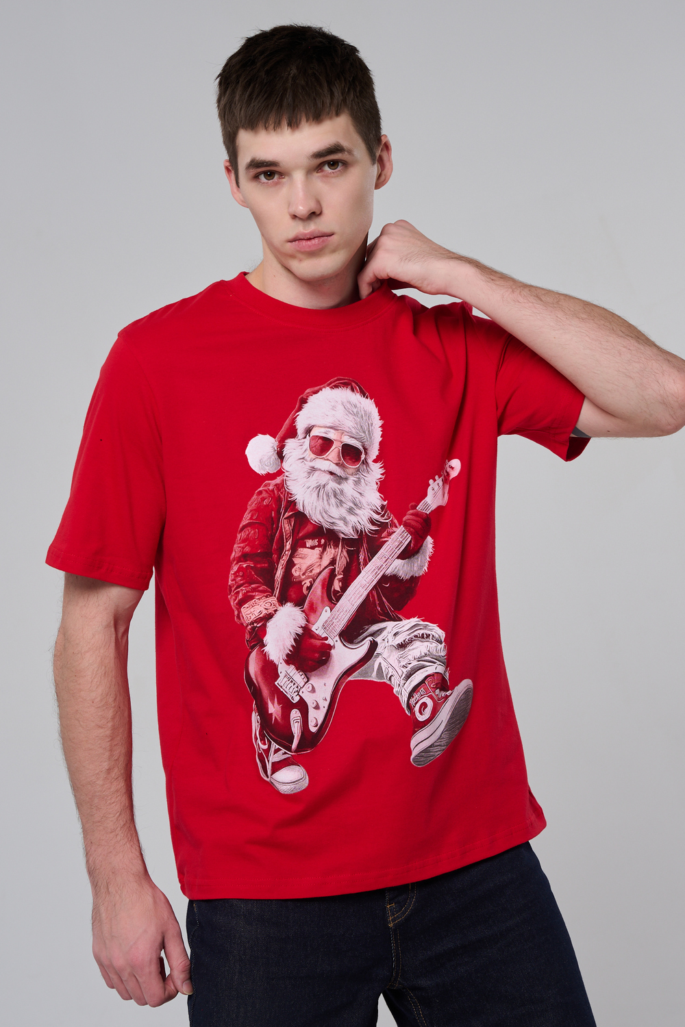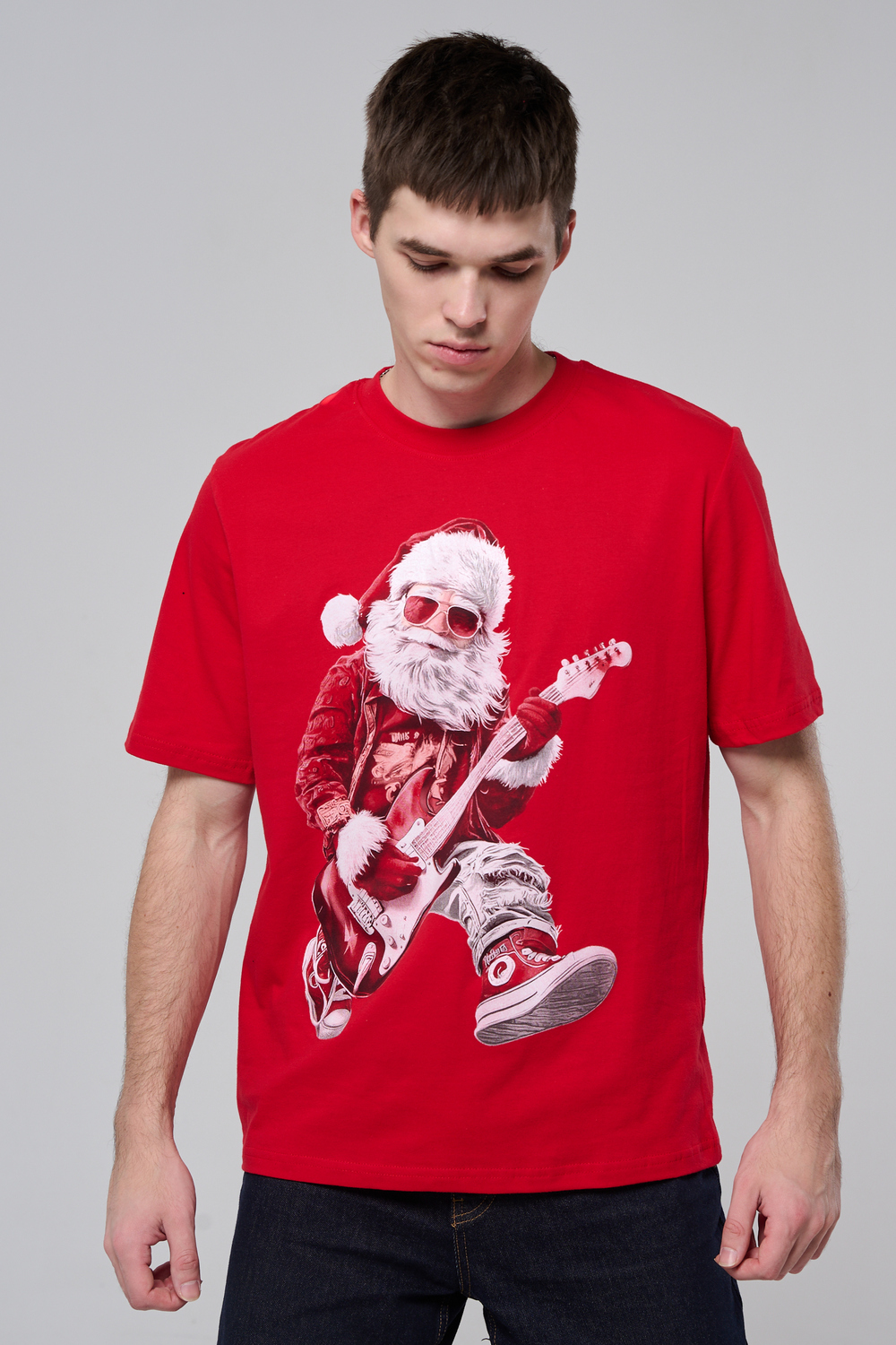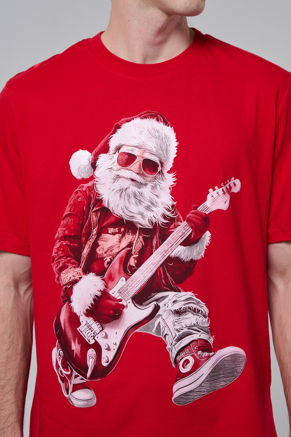 Представьте: Новый год, вечеринка в разгаре, а вы в стильной красной футболке с Сантой, который не просто раздает подарки, а зажигает на полную! На одной версии – Santa DJ в наушниках, миксует треки за пультом. На второй – Santa Rocker с гитарой, в прыжке, готовый к соло! Дизайн в белом и красном – яркий, юмористичный и супер-актуальный для праздников.