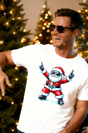 Представьте: Новый год, вечеринка в разгаре, а вы в стильной красной футболке с Сантой, который не просто раздает подарки, а зажигает на полную! На одной версии – Santa DJ в наушниках, миксует треки за пультом. На второй – Santa Rocker с гитарой, в прыжке, готовый к соло! Дизайн в белом и красном – яркий, юмористичный и супер-актуальный для праздников.
