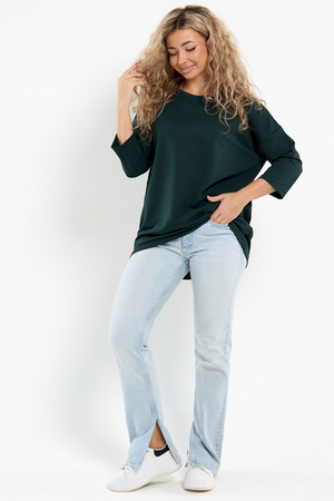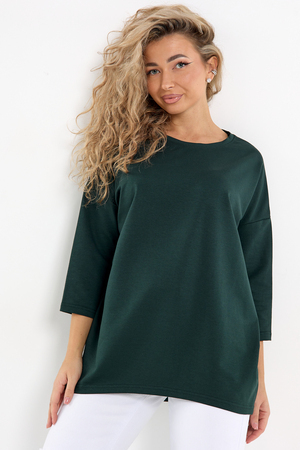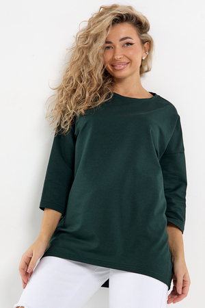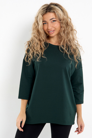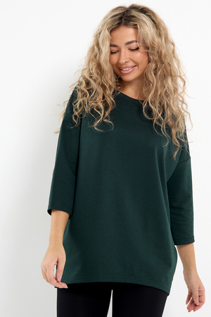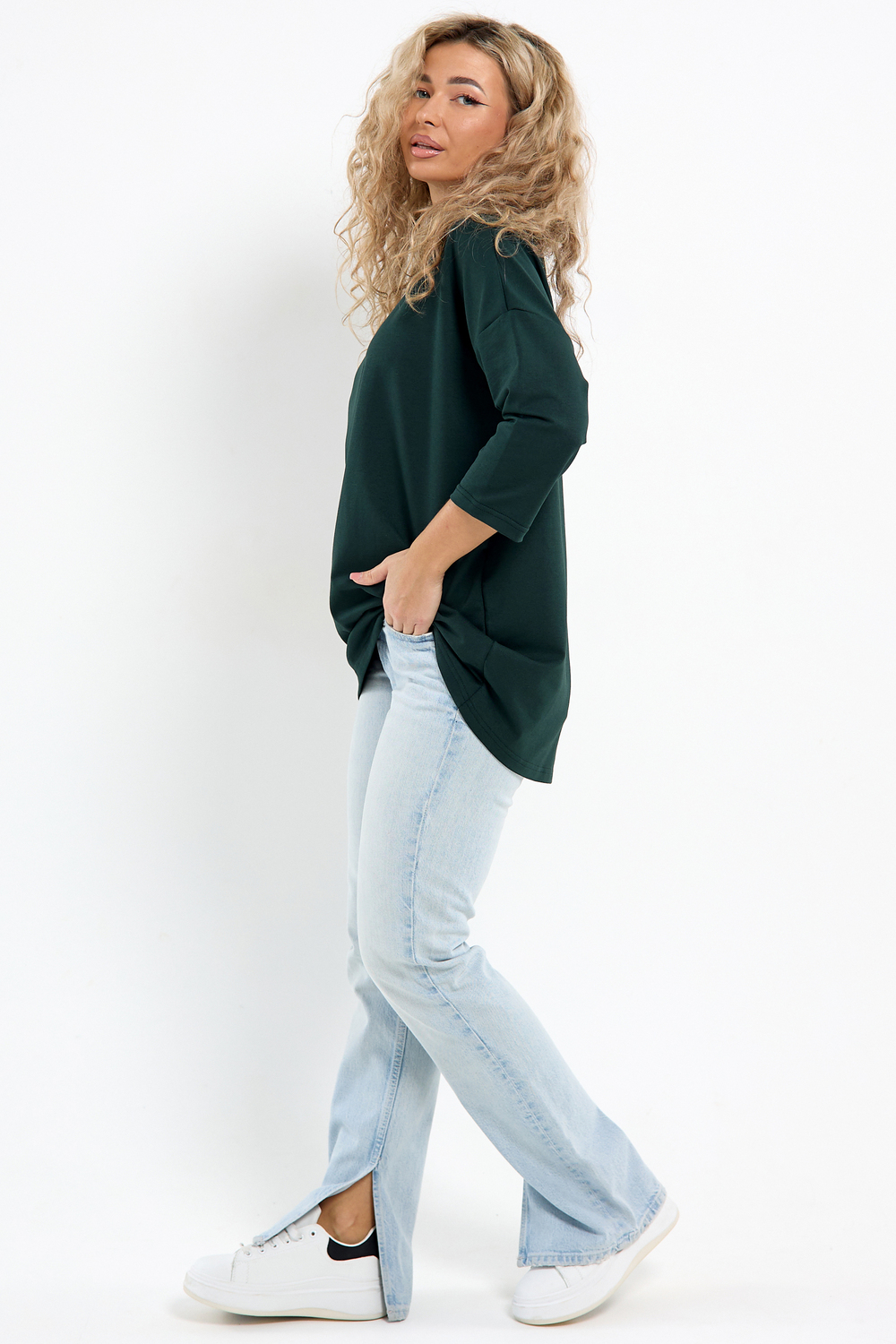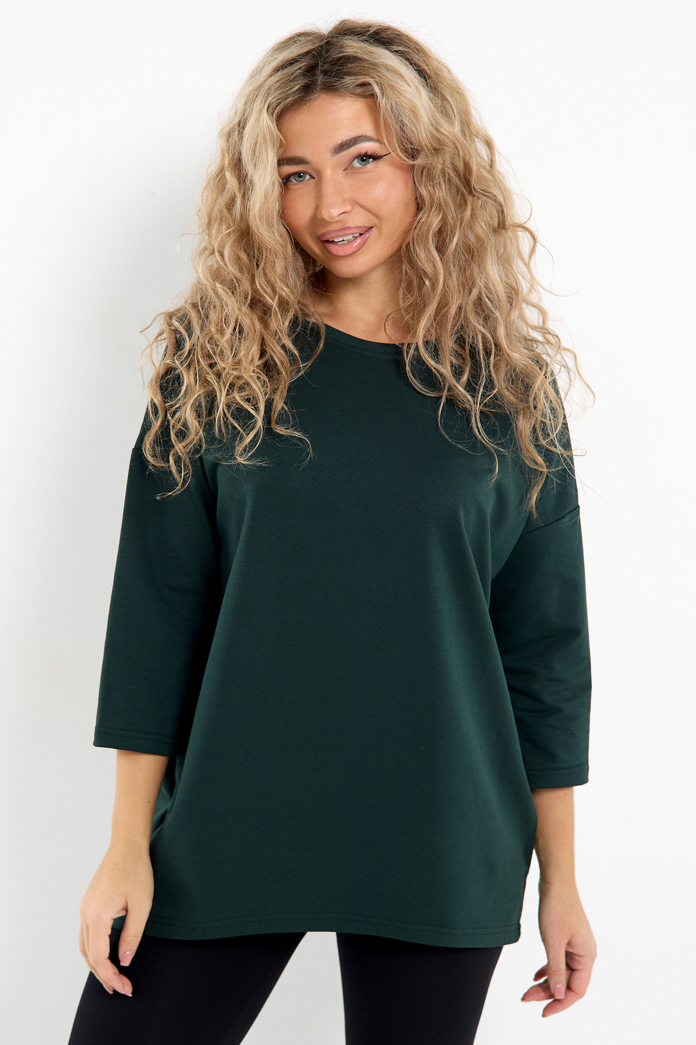 Лонгслив это стильная и комфортная женская кофта, идеально подходящая для одежды стандартных и больших размеров. Лонг это отличный выбор для женщин, которые ценят стиль и комфорт. Изготовленный из футера двунитки, он обеспечивает хорошую воздухопроницаемость. Идеальная кофточка для девушек, подходящая для различных возрастных групп. Независимо от того, с каким образом вы решите носить, он будет отлично сочетаться с различной одеждой, создавая стильные и модные образы. Стильный лонгслив оверсайз с рукавом 3/4 это оптимальный вариант одежды второго слоя для осени и зимы, именно такая ткань позволит найти лучший баланс между тепло и не жарко. Отлично подходит для повседневной носки и вечерних мероприятий. Данная туника без горла может стать в вашем гардеробе отличной одеждой для дома, а также для офиса и под верхнюю одежду. Хотя в ней не жарко даже в тёплую погоду. Трикотажный свитшот в меру удлиненный. Лонгслив абсолютно не стесняет движений и подчеркивает вашу свободу. Классический лонгслив легко сочетать с другими предметами гардероба.