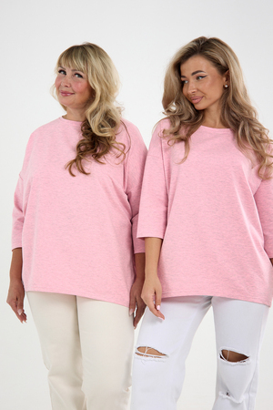 Лонгслив это стильная и комфортная женская кофта, идеально подходящая для одежды стандартных и больших размеров.  Лонг  это отличный выбор для женщин, которые ценят стиль и комфорт. Изготовленный из футера двунитки, он обеспечивает хорошую воздухопроницаемость. Идеальная кофточка для девушек, подходящая для различных возрастных групп. Независимо от того, с каким образом вы решите носить, он будет отлично сочетаться с различной одеждой, создавая стильные и модные образы. Стильный лонгслив оверсайз с рукавом  3/4 это оптимальный вариант одежды второго слоя для осени и зимы, именно такая ткань позволит найти лучший баланс между тепло и не жарко. Отлично подходит для повседневной носки и вечерних мероприятий.  Данная туника  без горла может стать в вашем гардеробе отличной одеждой для дома, а также для офиса и под верхнюю одежду. Хотя в ней не жарко даже в тёплую погоду. Трикотажный свитшот  в меру удлиненный. Лонгслив абсолютно не стесняет движений и подчеркивает вашу свободу. Классический лонгслив легко сочетать с другими предметами гардероба.