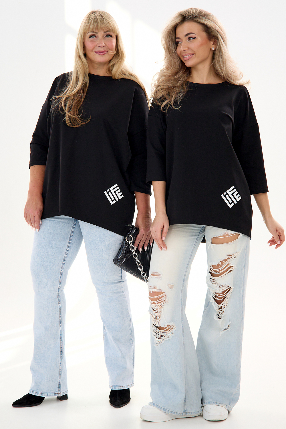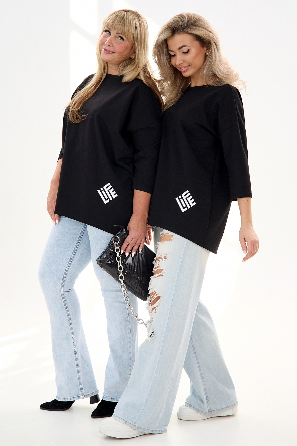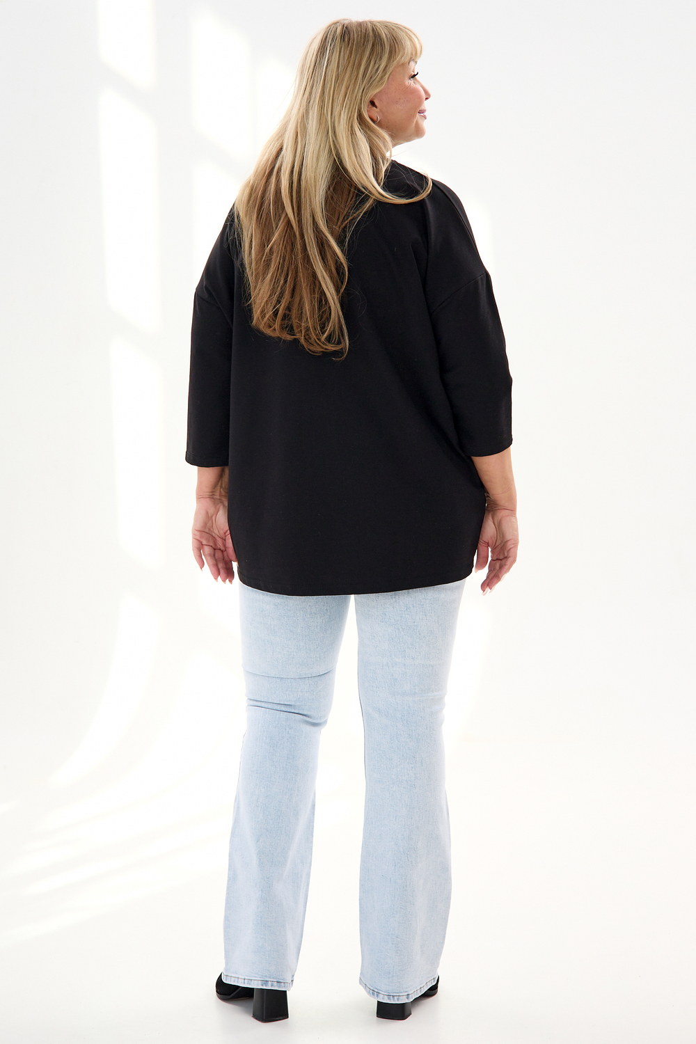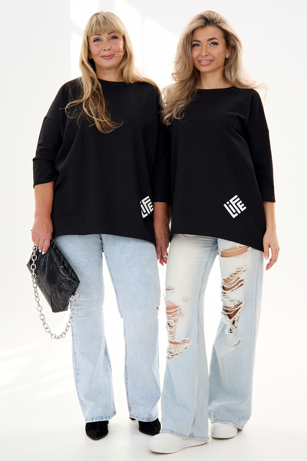 Лонгслив это стильная и комфортная женская кофта, идеально подходящая для одежды стандартных и больших размеров. Лонг это отличный выбор для женщин, которые ценят стиль и комфорт. Изготовленный из футера двунитки, он обеспечивает хорошую воздухопроницаемость. Идеальная кофточка для девушек, подходящая для различных возрастных групп. Независимо от того, с каким образом вы решите носить, он будет отлично сочетаться с различной одеждой, создавая стильные и модные образы. Стильный лонгслив оверсайз с рукавом 3/4 это оптимальный вариант одежды второго слоя для осени и зимы, именно такая ткань позволит найти лучший баланс между тепло и не жарко. Отлично подходит для повседневной носки и вечерних мероприятий. Данная туника без горла может стать в вашем гардеробе отличной одеждой для дома, а также для офиса и под верхнюю одежду. Хотя в ней не жарко даже в тёплую погоду. Трикотажный свитшот в меру удлиненный. Лонгслив абсолютно не стесняет движений и подчеркивает вашу свободу. Классический лонгслив легко сочетать с другими предметами гардероба.