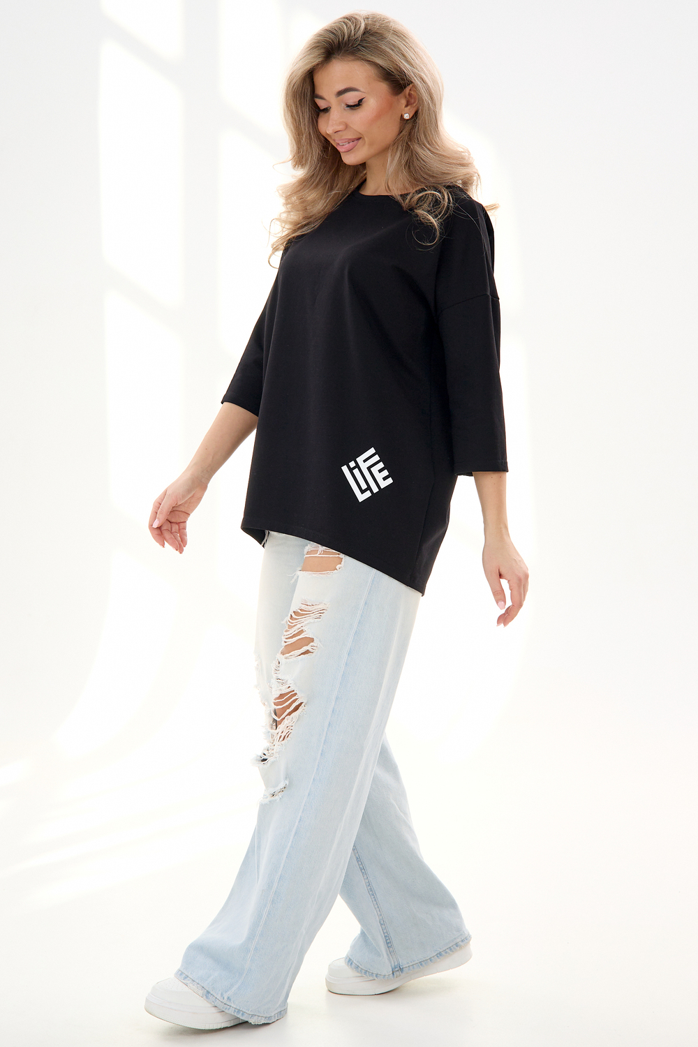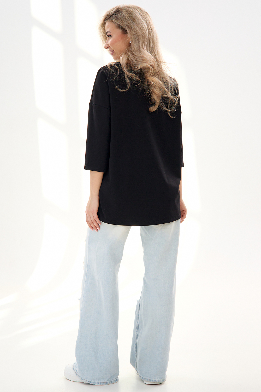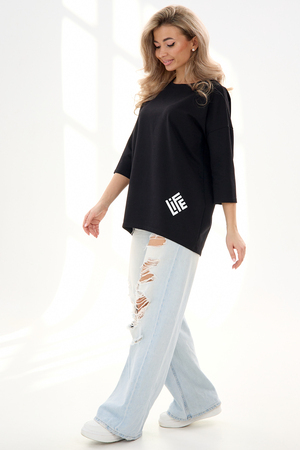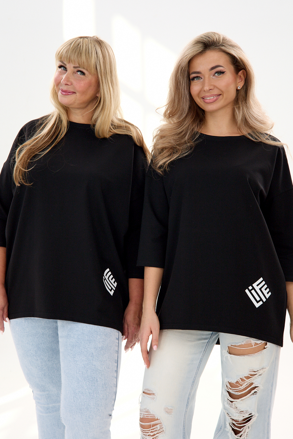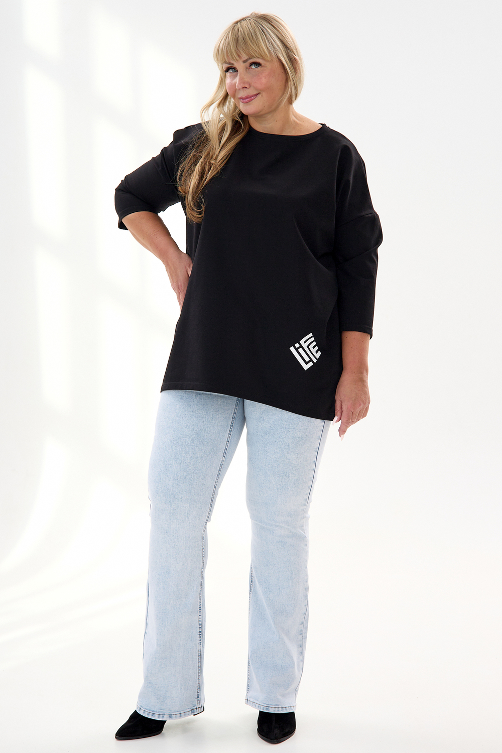 Лонгслив это стильная и комфортная женская кофта, идеально подходящая для одежды стандартных и больших размеров. Лонг это отличный выбор для женщин, которые ценят стиль и комфорт. Изготовленный из футера двунитки, он обеспечивает хорошую воздухопроницаемость. Идеальная кофточка для девушек, подходящая для различных возрастных групп. Независимо от того, с каким образом вы решите носить, он будет отлично сочетаться с различной одеждой, создавая стильные и модные образы. Стильный лонгслив оверсайз с рукавом 3/4 это оптимальный вариант одежды второго слоя для осени и зимы, именно такая ткань позволит найти лучший баланс между тепло и не жарко. Отлично подходит для повседневной носки и вечерних мероприятий. Данная туника без горла может стать в вашем гардеробе отличной одеждой для дома, а также для офиса и под верхнюю одежду. Хотя в ней не жарко даже в тёплую погоду. Трикотажный свитшот в меру удлиненный. Лонгслив абсолютно не стесняет движений и подчеркивает вашу свободу. Классический лонгслив легко сочетать с другими предметами гардероба.