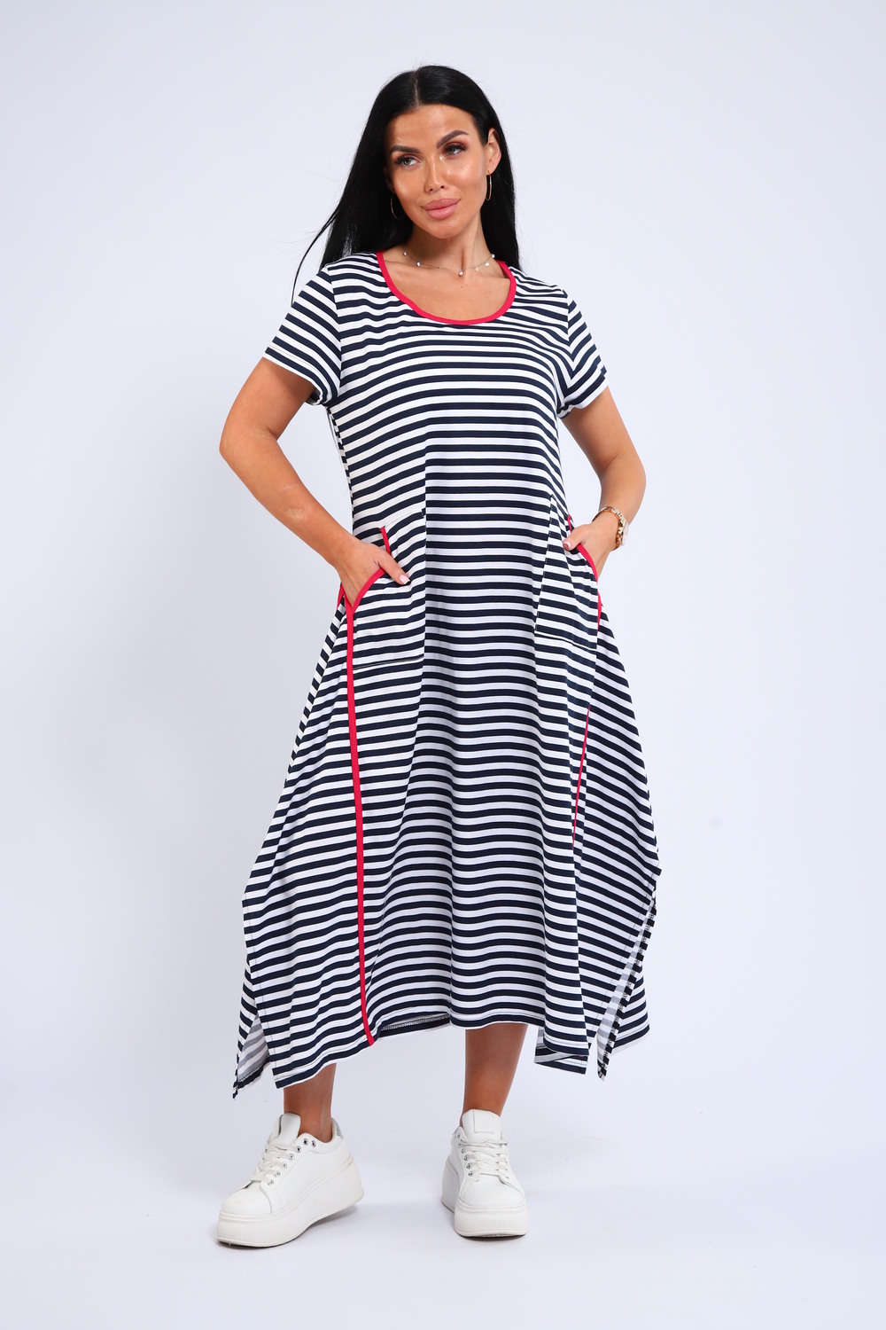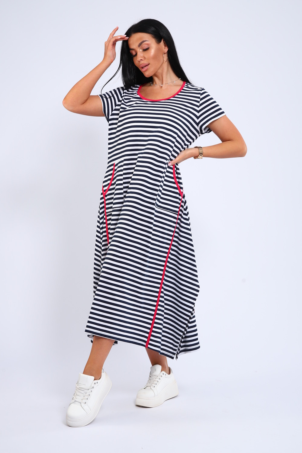 Погрузитесь в мир женственной элегантности с трикотажным платьем больших размеров. Изготовленное из дышащего натурального 100% хлопка, оно обеспечит комфорт и уют в любое время года. Модель оверсайз гарантирует свободу движений и скрывает недостатки. Женское платье с коротким рукавом подходит для повседневных прогулок летом. Лакончиный дизайн с фигурным исполнением низа подола клеш сделает ваш образ стильным и неповторимым. Домашний сарафан полуприлегающего силуэта – прекрасный выбор не только в качестве повседневной одежды, но и для дома. Это классическое платье станет вашим любимым нарядом для работы и праздника. Женственное и красивое, оно подходит для торжества и вечернего выхода. Удлиненное домашнее платье будет прекрасно смотреться на беременных и полных дамах. Мягкая, приятная к телу ткань и женственный рисунок сделают нашу летнюю тунику любимой частью гардероба девушек с разным типом фигуры. Она подчеркнёт красоту и станет незаменимым спутником в любой ситуации.
