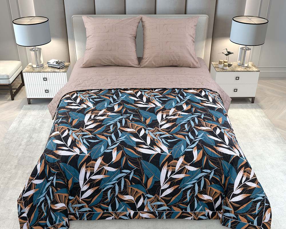 Уникальность комплекта для сна заключается в том, что вместо традиционного пододеяльника и наволочек в комплект входит тонкое стеганое одеяло, выполненное из ткани того же дизайна, что и основной комплект.