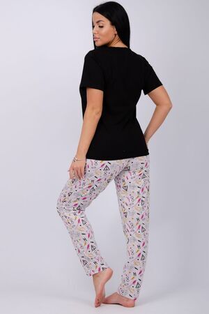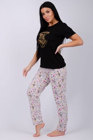 Пижама женская со штанами изготовлена из мягкой ткани (100 % хлопка), которая обладает дышащими и влаговпитывающими свойствами, идеально подходит для сна, обеспечивает максимальную практичность и воздухопроницаемость, облегчая сон даже в самые жаркие и холодные ночи. Женский домашний костюм состоит из стильной тонкой ночной футболки с коротким рукавом и легких брюк, которые создают комфортный домашний уют дома. Милая женская пижамка украшена принтом. Пижама женская яркая и в тоже время нежная, идеальна для беременных, будущих мам или в роддом, ведь в этой пижаме для беременных удобно весь день. Носить можно в любое время года: осенью или даже зимой под согревающим одеялом.