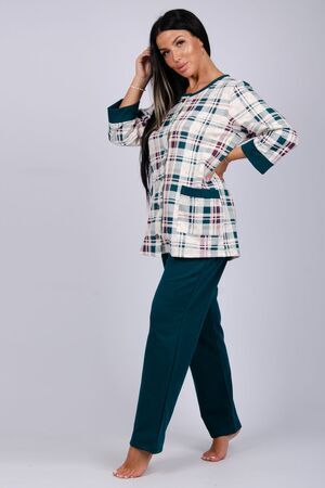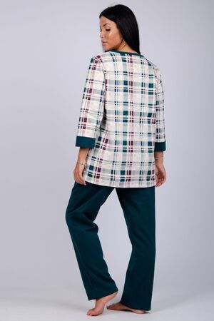 Этот комплект станет отличным выбором для холодных зимних вечеров, когда вам хочется обернуться теплом и комфортом. Мягкий и приятный на ощупь хлопок создает уютную атмосферу, что делает пижаму идеальной для носки как дома, так и на даче. Широкие брюки не сковывают движения, а легкий дизайн позволяет не ощущать дискомфорта во время сна.