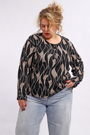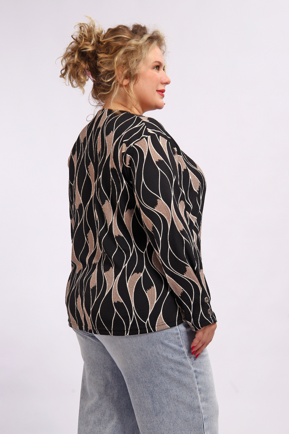 Элегантная блузка из 100 % полиэстера — практичная и стильная базовая вещь для повседневного и делового гардероба. Ткань отличается износостойкостью, хорошо держит форму, не мнётся и легко стирается. Контрастное черно‑белое сочетание цвета, создающее выразительный визуальный эффект. Стандартная длина до линии бёдер подходит для сочетания с юбками и брюками.