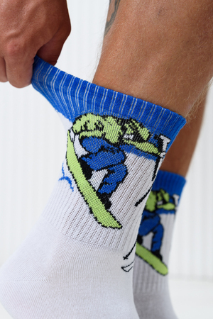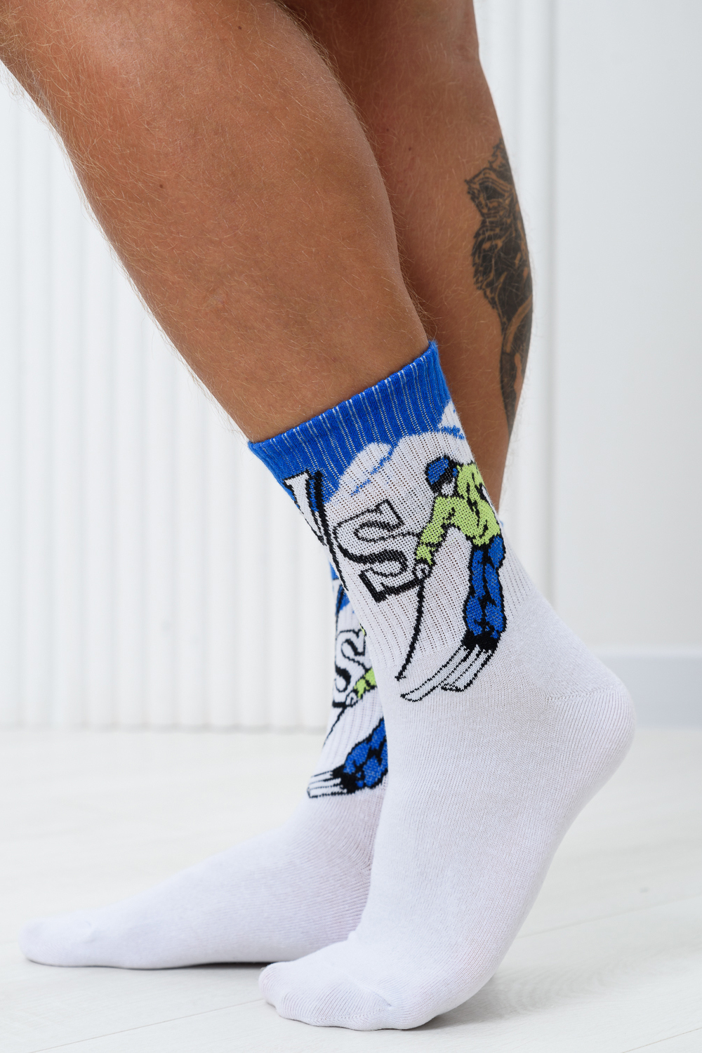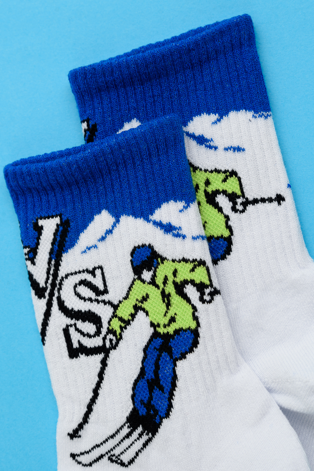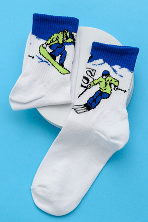 Комплект мужских носков 1 пара. На верхней части носка изображение сноубордиста.