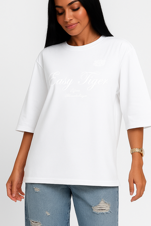 Оверсайз футболка — это не только модный тренд, но и отличный способ подчеркнуть индивидуальность. Она легко сочетается с другими элементами гардероба, будь то джинсы, леггинсы или юбка. Эта женская футболка станет незаменимой частью вашего гардероба, добавляя в него нотку нежности и уюта.