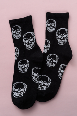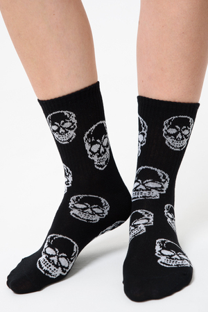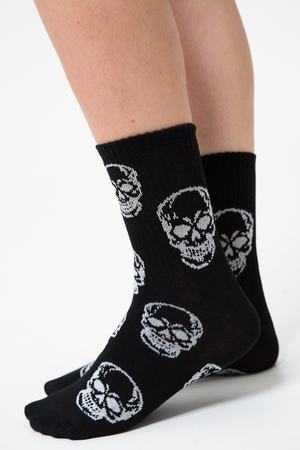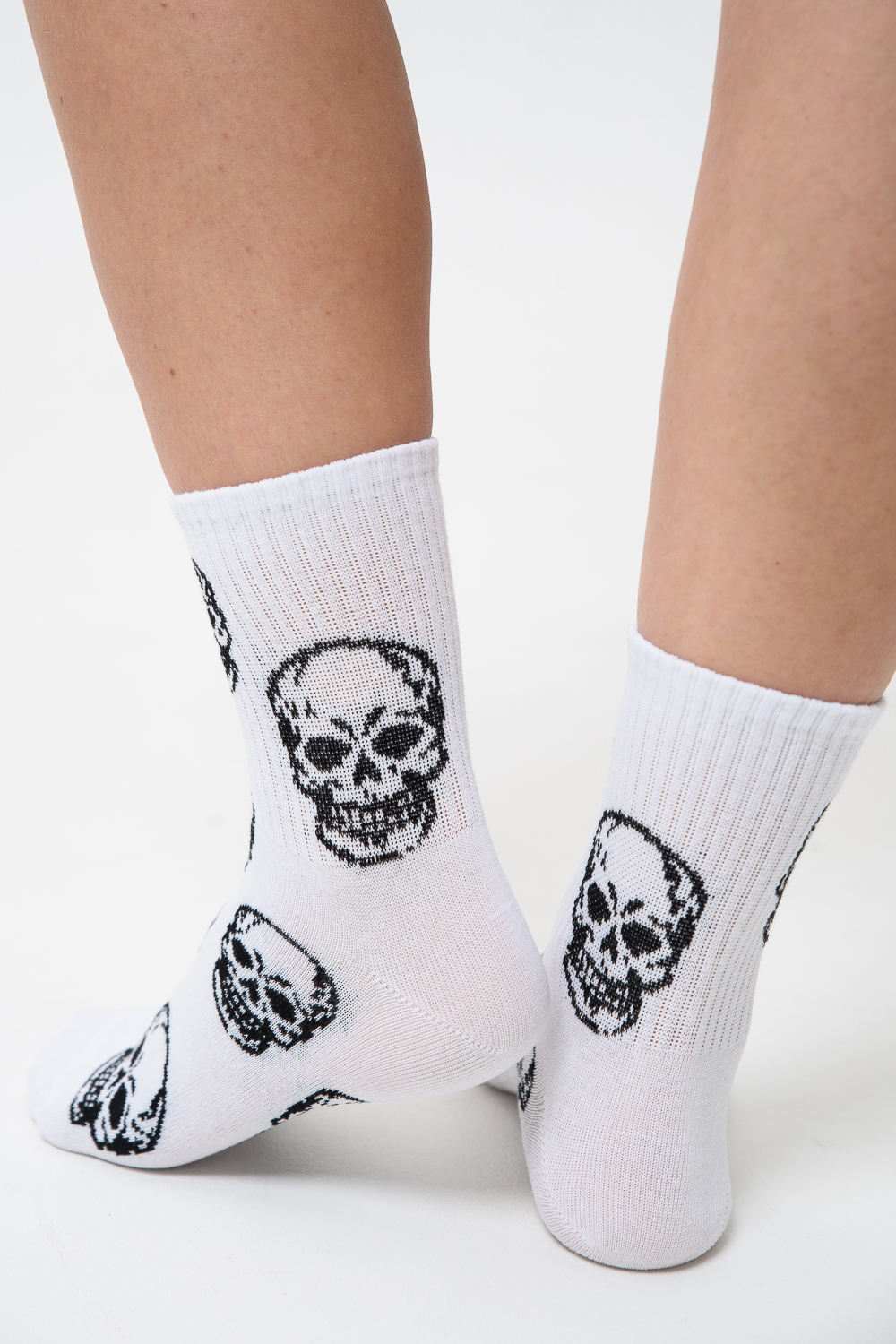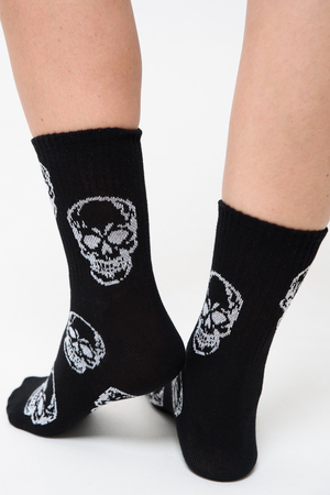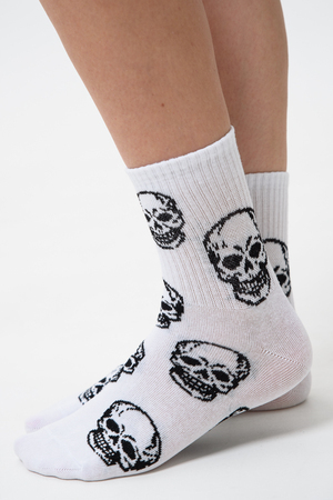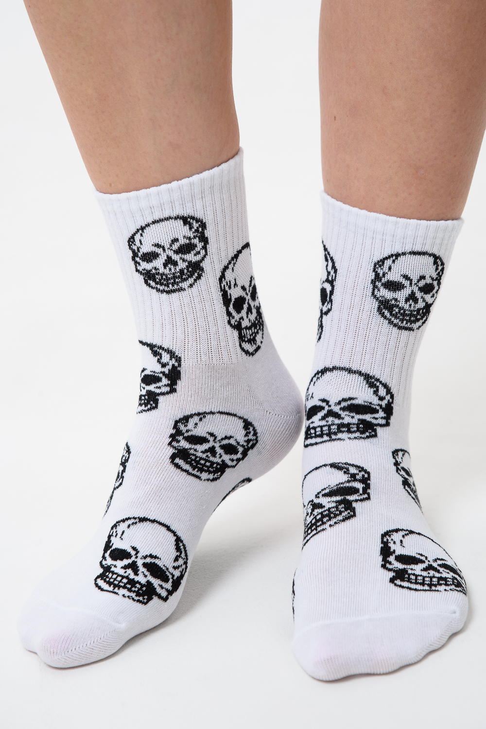 Женские носки с изображением черепов. Широкая резинка по всей верхней части носка.